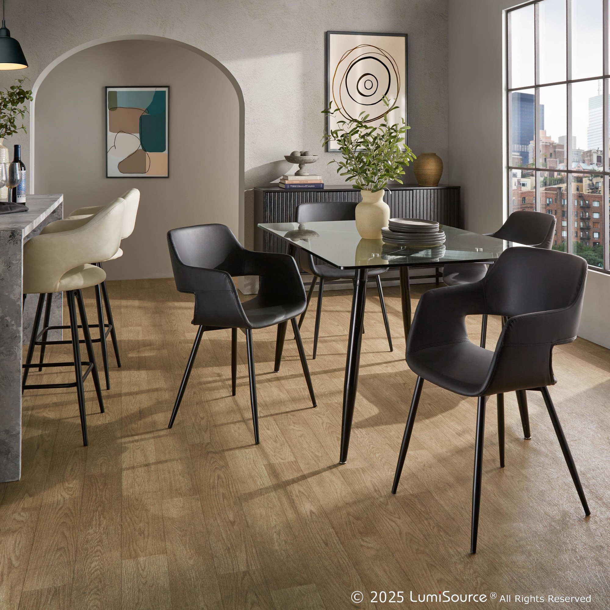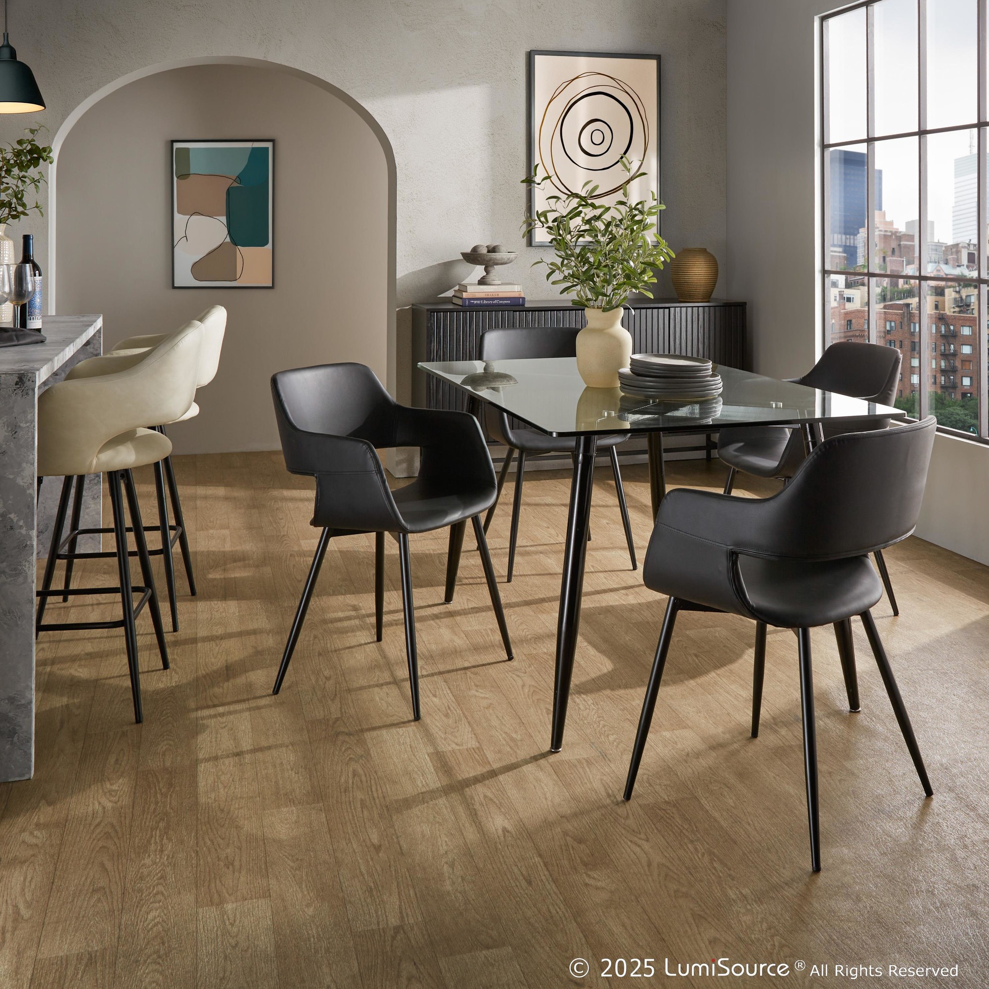 Inspired by Contemporary design, the LumiSource Margarite Dining Chair features a low backrest with a slight opening, ergonomically designed to fit your body, armrests for additional comfort and sleek metal legs. Upholstered in a variety of colors, the Margarite Dining Chair will look great in any dining area or living room.