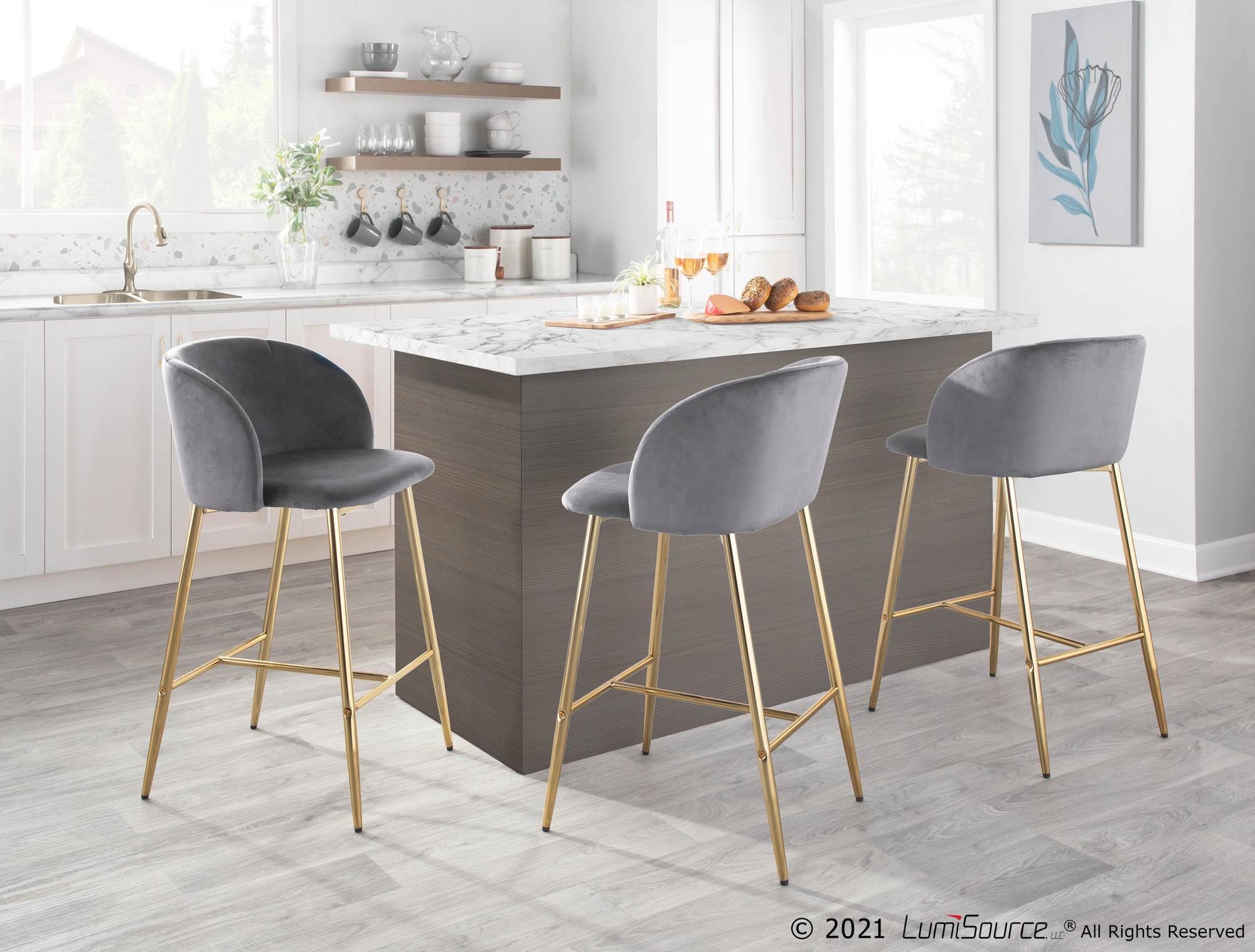 Surround your counter area or dining table with the beauty of the Fran Counter Stool by LumiSource. Featuring a sophisticated velvet upholstery that will tie in perfectly with your contemporary decor, this ultra-comfortable padded bucket seat is complemented by tapered legs. Available in a variety of color combinations, choose the color that ties in with your decor!