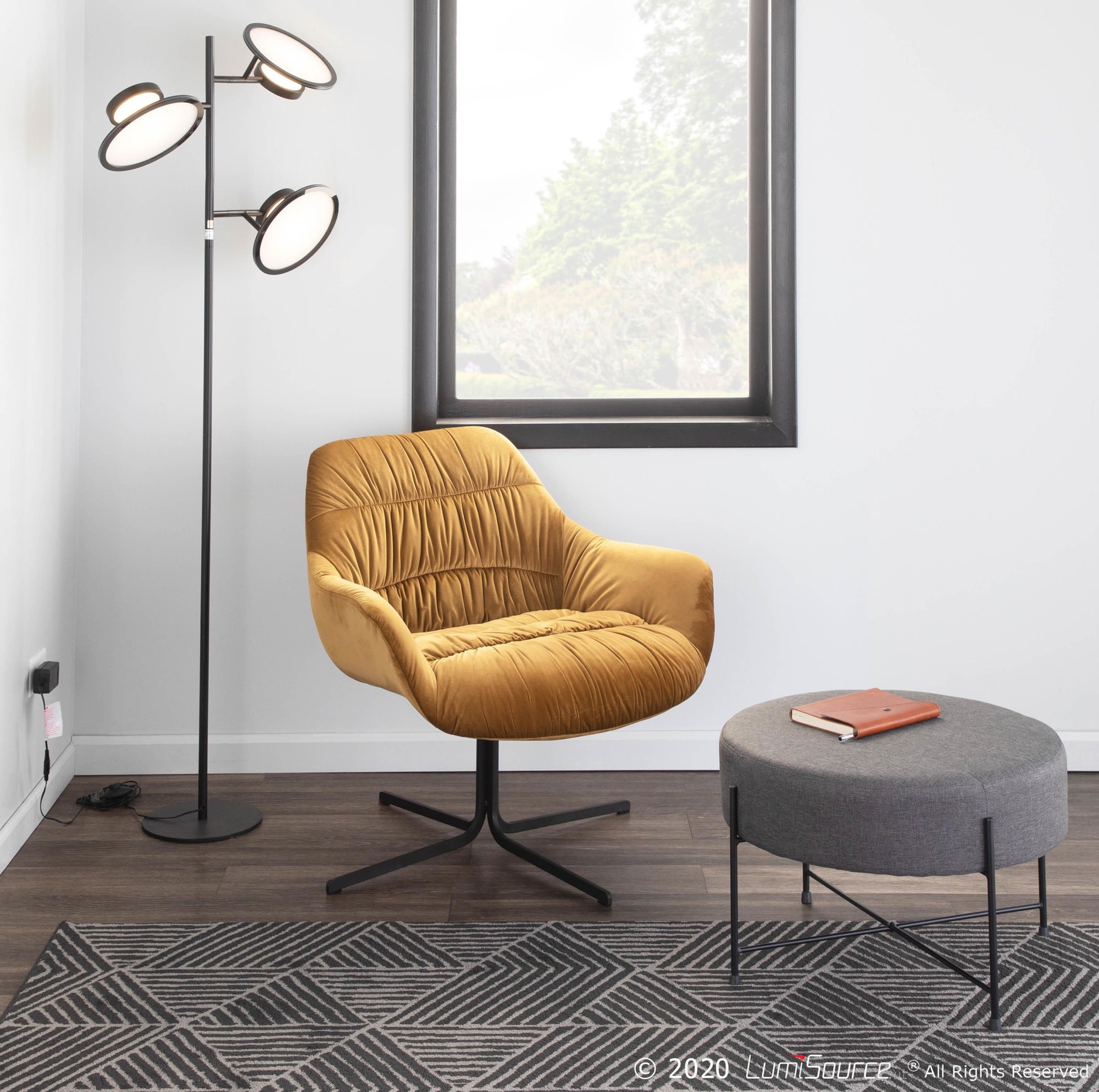 The Wayne Swivel Lounge Chair by LumiSource will bring life to your living room or study with a comfortable style that will look great with any modern decor. This plush lounge chair features a wide backrest with flared armrests and padded foam for complete comfort. With a sleek velvet upholstery, stylish tufting, and a black metal base, this chair is designed with a full 360-degree swivel. Available in a variety of colors, choose the one that fits your space the best.