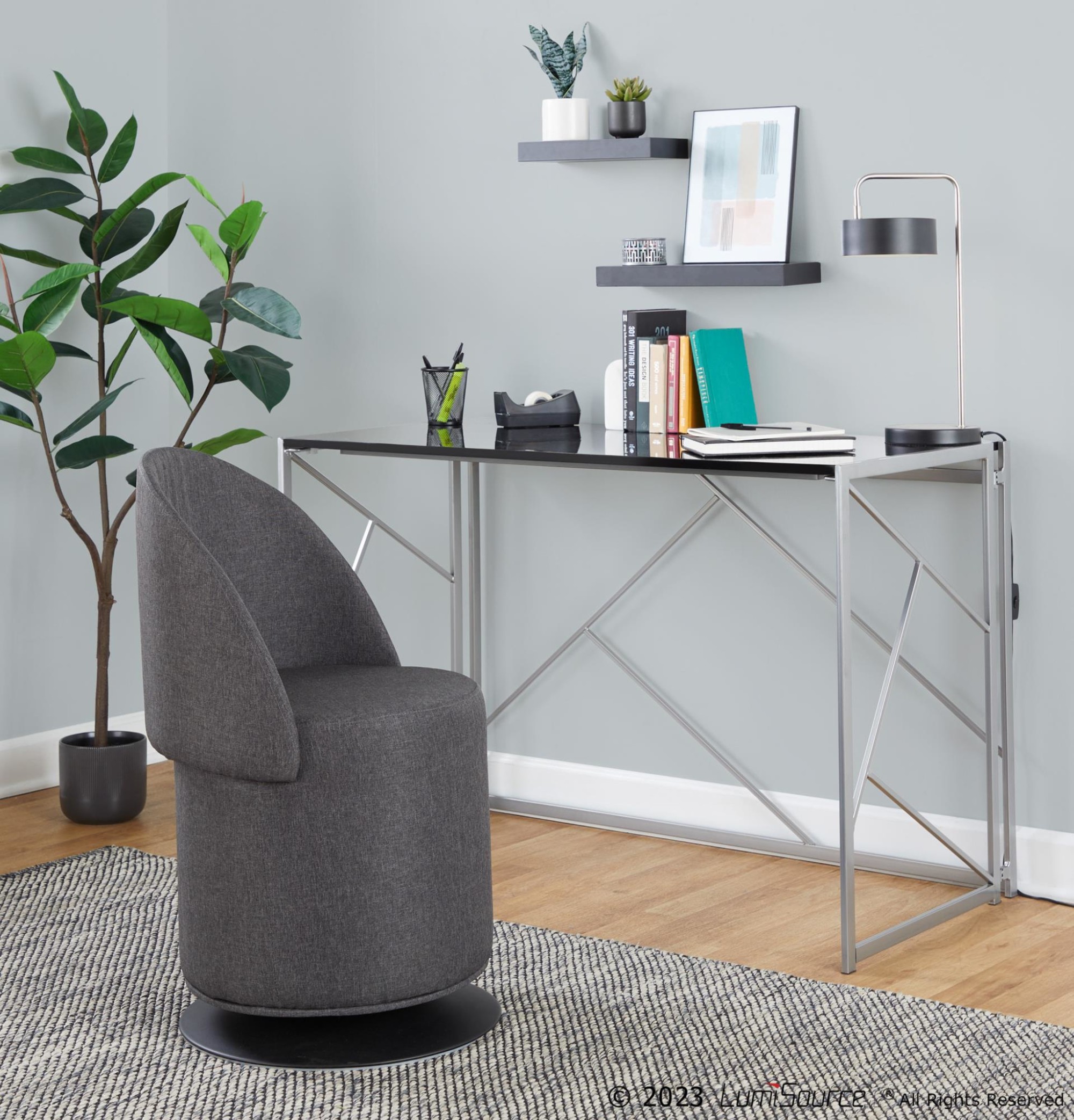 Add a unique piece to your home with the Finch Swivel Chair by LumiSource. This sleek and functional chair can be used and transformed to fit into any room in your home. The adjustable backrest can be converted from an upright position as a chair to a downward position for storage under a table or to be used as an ottoman. With various different colors and functions, you can select a Finch Chair that suits your space the best!