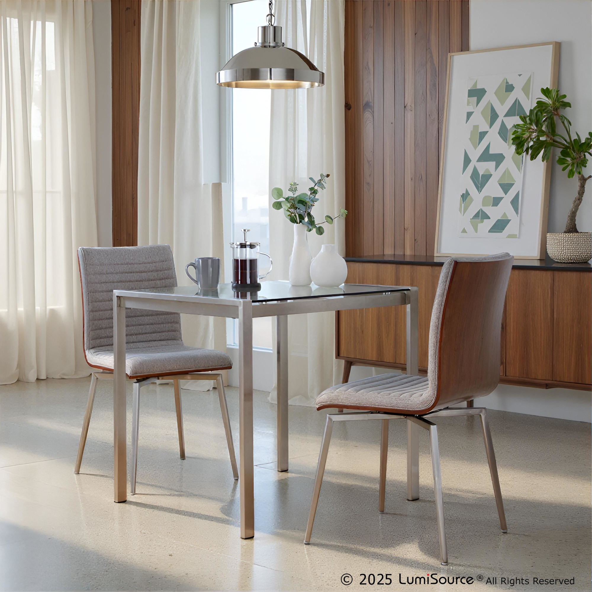 The simple and sleek design of the LumiSource Mason Chair is versatile and aesthetically pleasing. Featuring a solid wood back, tufted upholstered seat with swivel, and stainless steel legs, the Mason Chair will pair nicely with a variety of decor styles. Great for use as a dining, accent, or conference chair.
