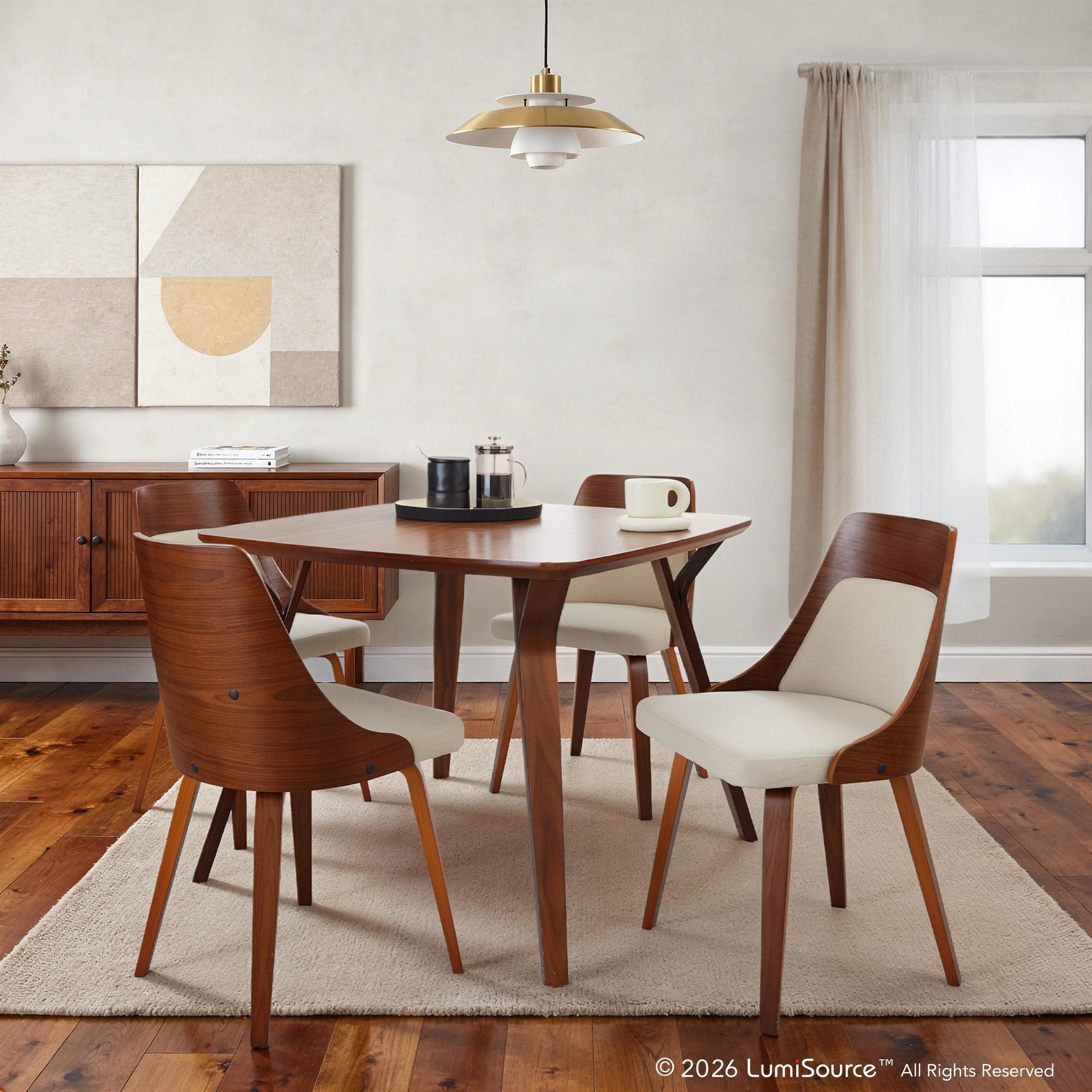 Pull up a seat to your Mid-Century inspired space and enjoy the beauty of the Anabelle Dining Chair by LumiSource. A combination of natural bent wood and padded upholstery, the Anabelle Dining Chair is oh-so stylish! Available in various colors and upholstery, choose the color that ties in with your decor.