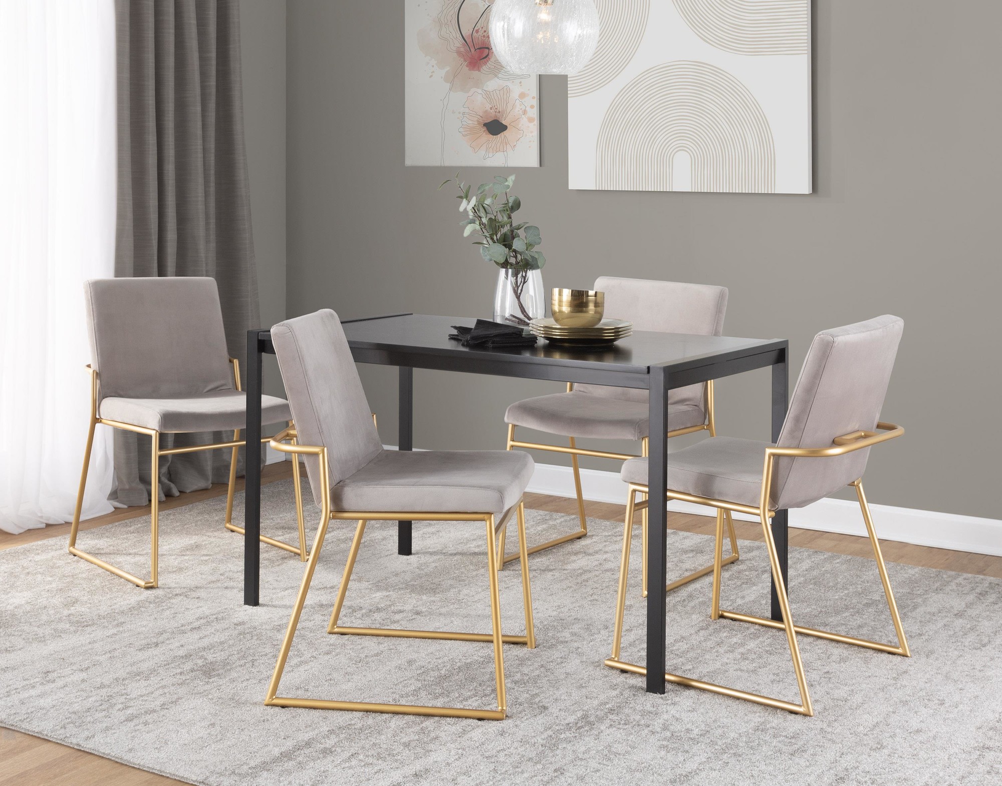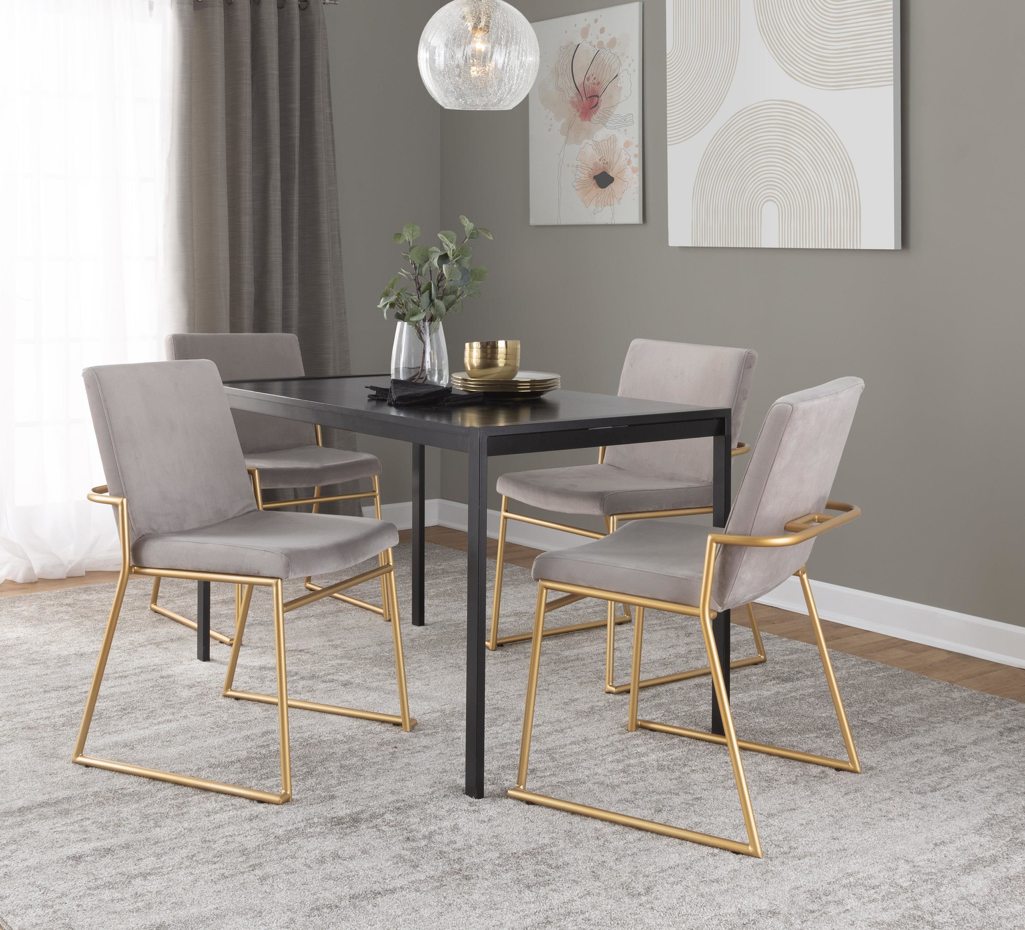 Enjoy the modern elegance of the Dutchess Dining Chair by LumiSource. With its contemporary and glamorous style, the Dutchess Dining Chair offers both comfort and luxury for your dining experience. Dressed with gold steel and velvet upholstery, this chair will be the main attraction in any dining room, break room, or kitchen. Available in various color options, choose one that fits your style best!