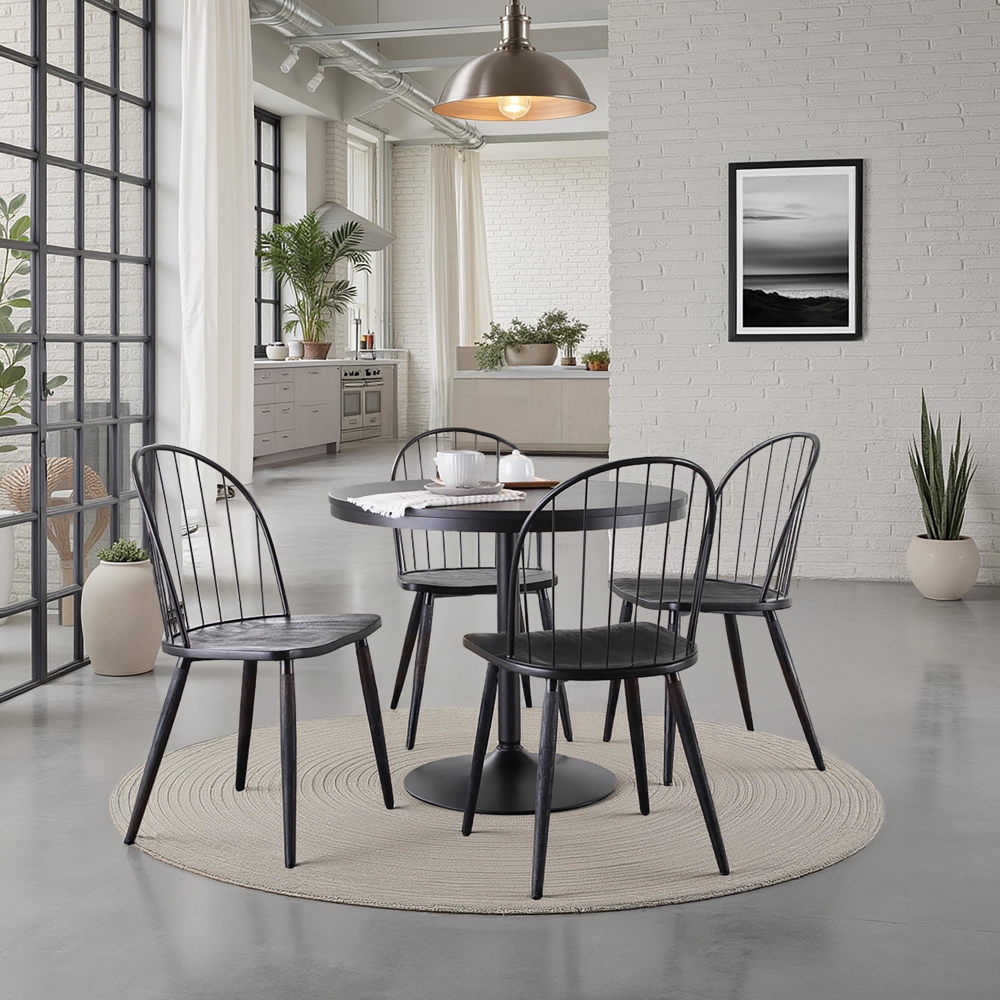 Bring industrial style to your dining room with the Riley High Back Chair by LumiSource. Our updated take on a traditional spindle-back chair, the Riley High Back Chair has a wood seat and legs complimented by a metal spindle backrest. The perfect chair for a dining table or extra seating, available in a variety of color options.