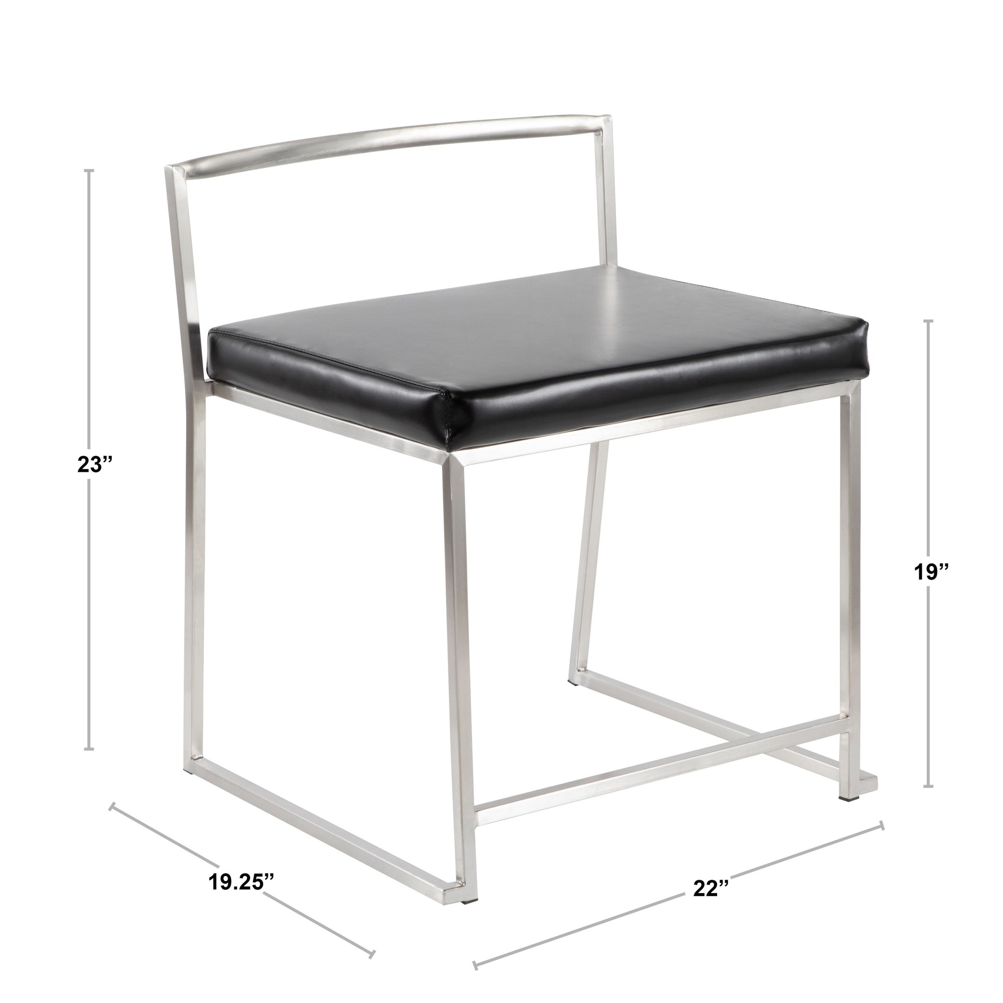 Modern elegance at its finest, the Fuji Stackable Dining Chair features an extra wide (and extra comfortable) upholstered seat, low backrest, and stylish stainless steel. The Fuji is perfect for use as a dining, office, or vanity chair.