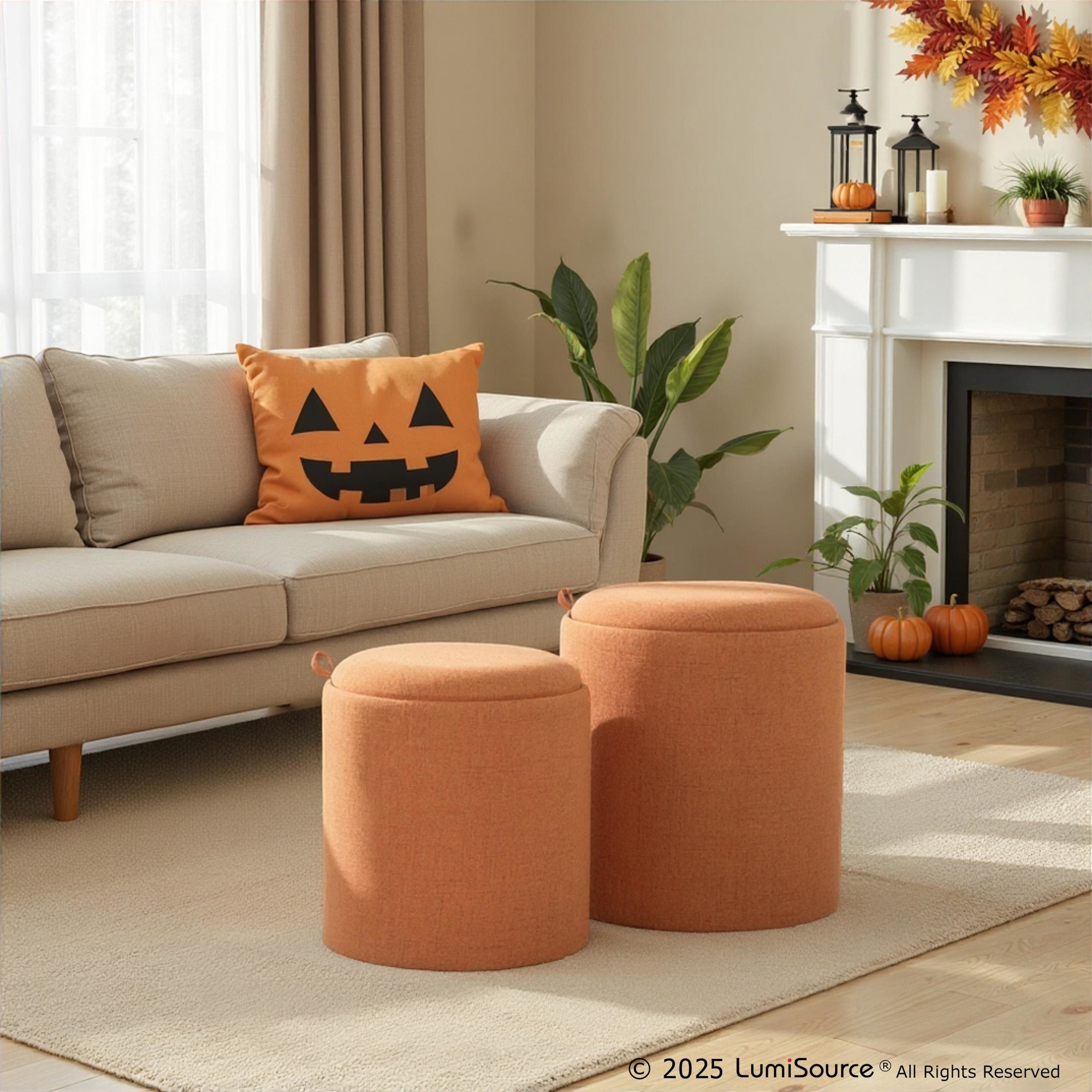 Get style and function in one with the Tray Nesting Ottoman Set by LumiSource. This multi-use ottoman set can be used as extra seating, storage, or a convenient serving tray when the top is turned over. The smaller ottoman nests inside the larger ottoman for a space-saving design. Available in a variety of colors and finishes, pick the one that fits your space the best.