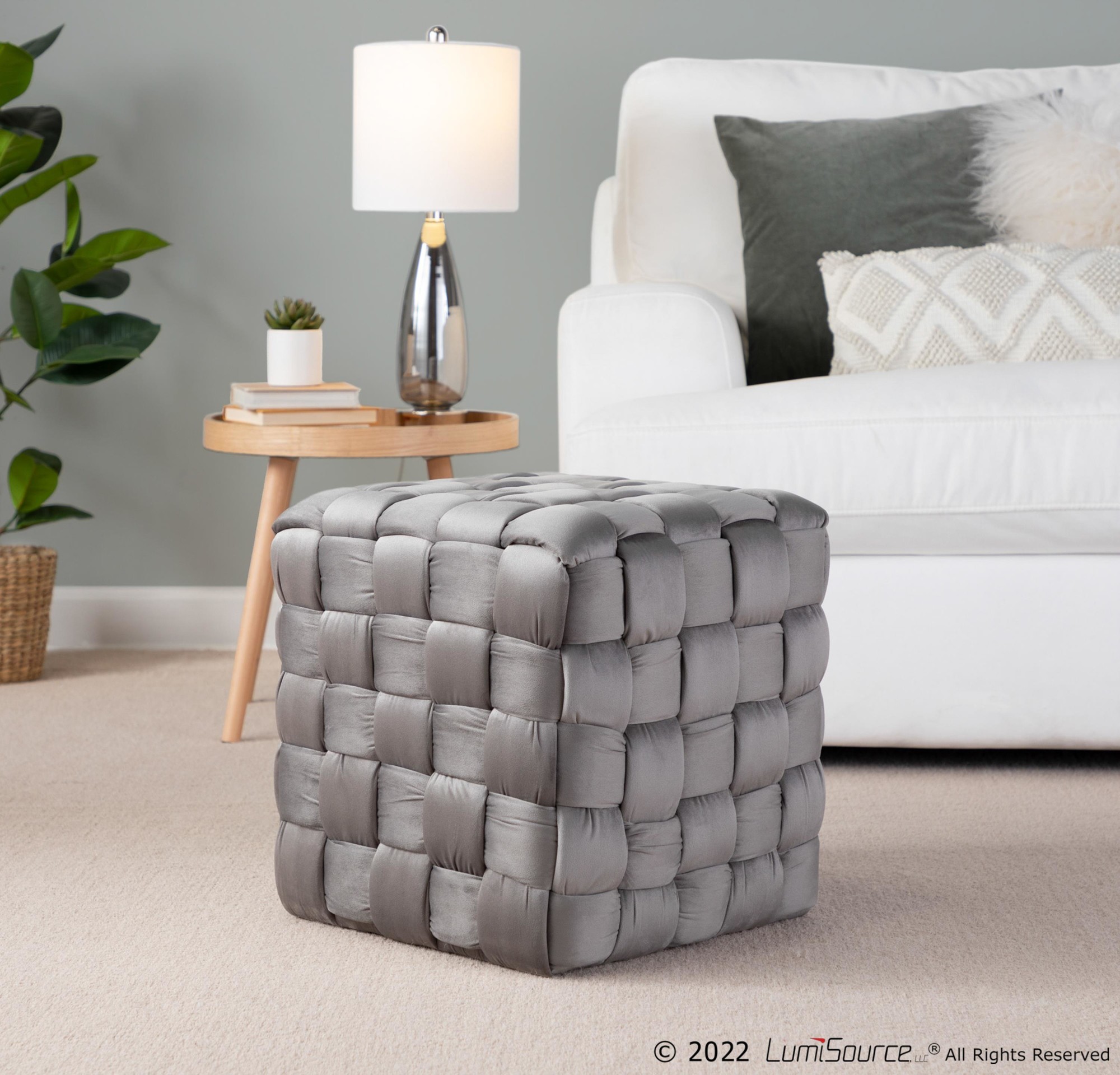 The Braided Square 16" Ottoman by Lumisource adds style and comfort to any living space. With its contemporary and eclectic design, this braided ottoman is perfect for resting and the velvet upholstery adds practical style to your room. Available in many different colors, choose one that fits your space best.