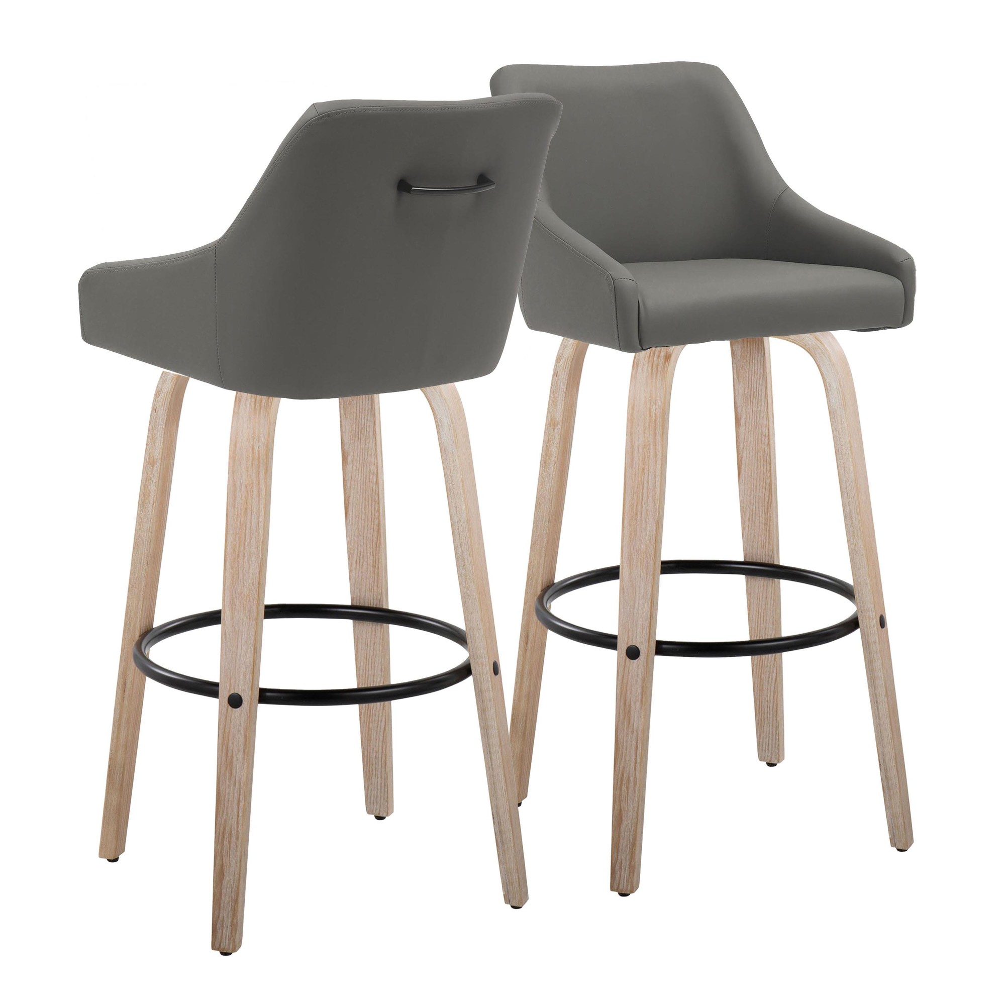 Elegant and simple, the LumiSource Hannah Fixed-Height Barstool will furnish any eating area in style. Featuring sleek bent wood legs, a comfortable padded upholstered seat, and a decorative handle adorning the seat back, the Hannah will elevate any space with its satisfying transitional design. Available in a variety of upholstery colors and finishes, choose the one that fits your space best.