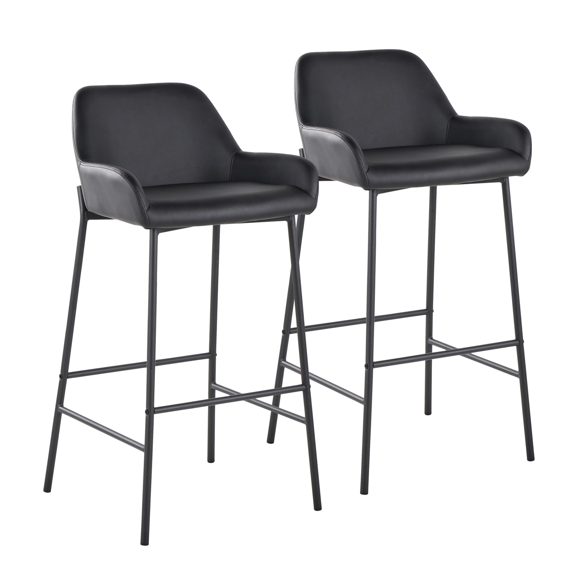 Add stylish and comfortable seating to your kitchen or bar area with the contemporary charm of the Daniella Fixed-Height Barstool by LumiSource. Featuring a sleek upholstered padded seat, backrest, and a unique metal frame. The Daniella is available in a variety of upholstery colors.