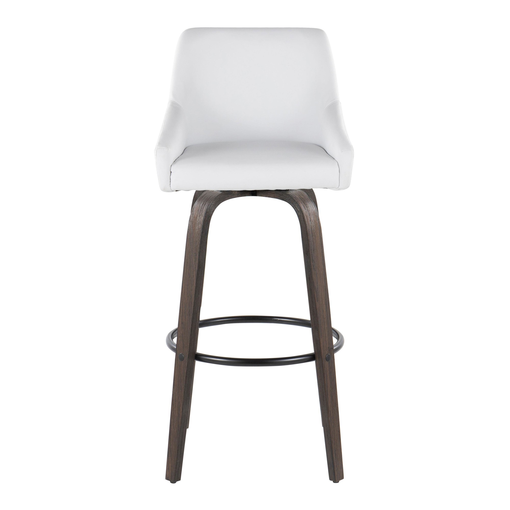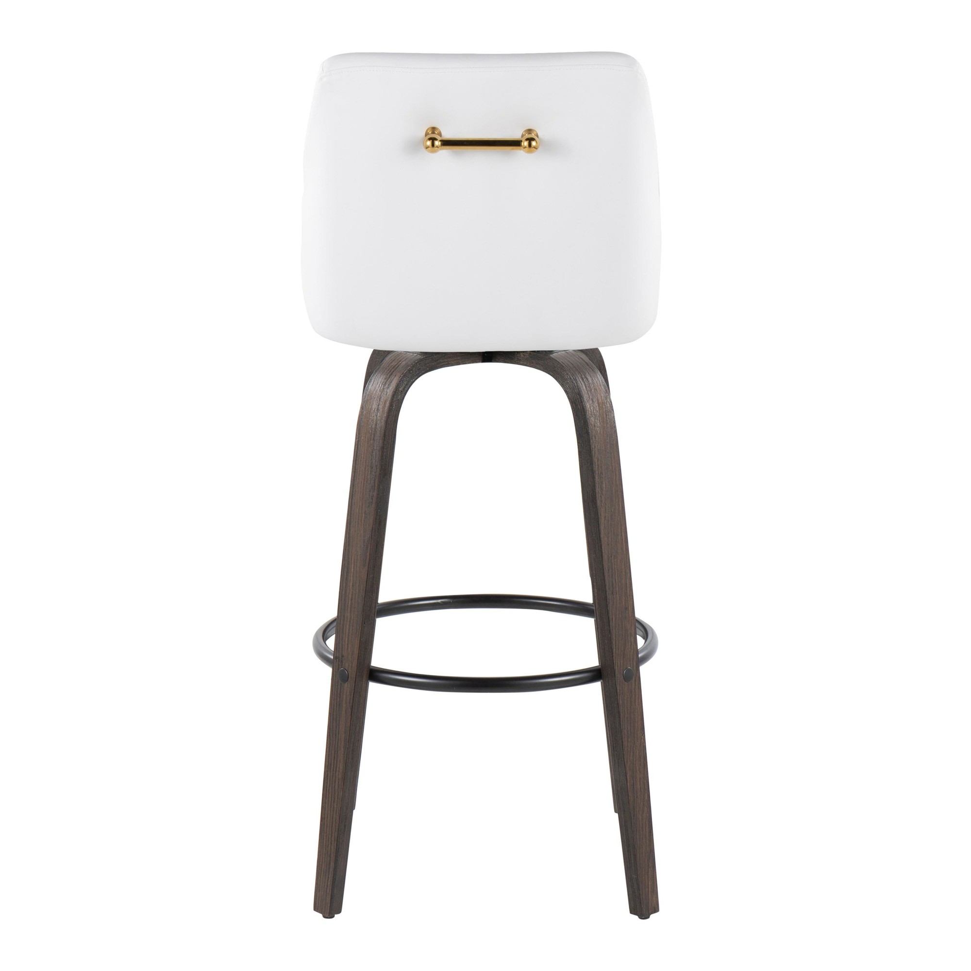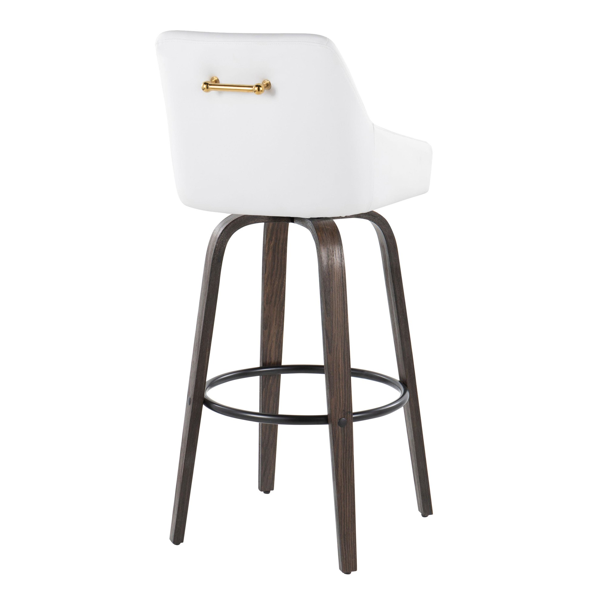 Elegant and simple, the LumiSource Hannah Fixed-Height Barstool will furnish any eating area in style. Featuring sleek bent wood legs, a comfortable padded upholstered seat, and a decorative handle adorning the seat back, the Hannah will elevate any space with its satisfying transitional design. Available in a variety of upholstery colors and finishes, choose the one that fits your space best.
