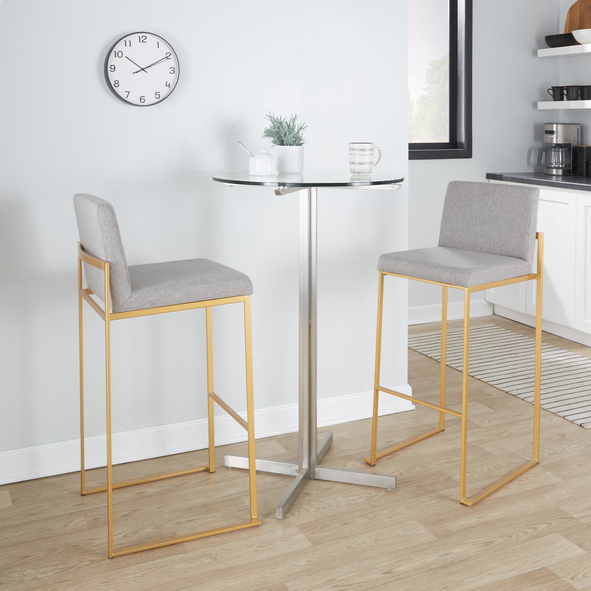 Modern elegance at its finest, the Fuji High Back Bar Stool by LumiSource features an extra-wide (and extra comfortable) upholstered seat, a high padded backrest, and a stylish metal frame. The perfect contemporary bar stool, the Fuji is available in a stainless steel, gold, or black metal frame and comes in a variety of sleek upholstery colors.