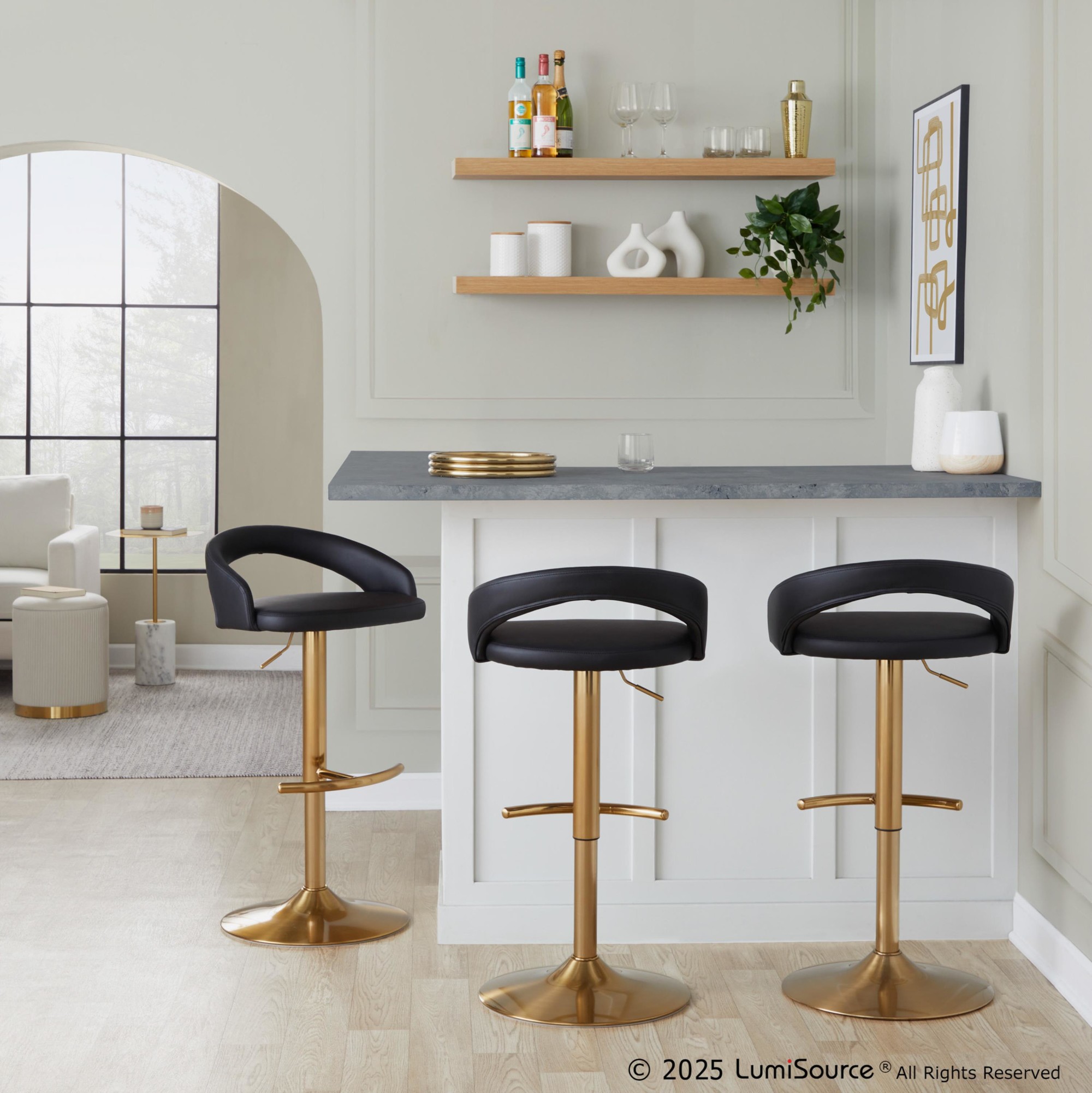 The Grotto Adjustable Barstool by LumiSource features a sleek curved low back design. This design radiates sophistication while modern features like a cushioned seat that swivels and adjustable base with built-in footrest bring this piece into a class all of its own. Available in various color options, choose the one that suits your space best.
