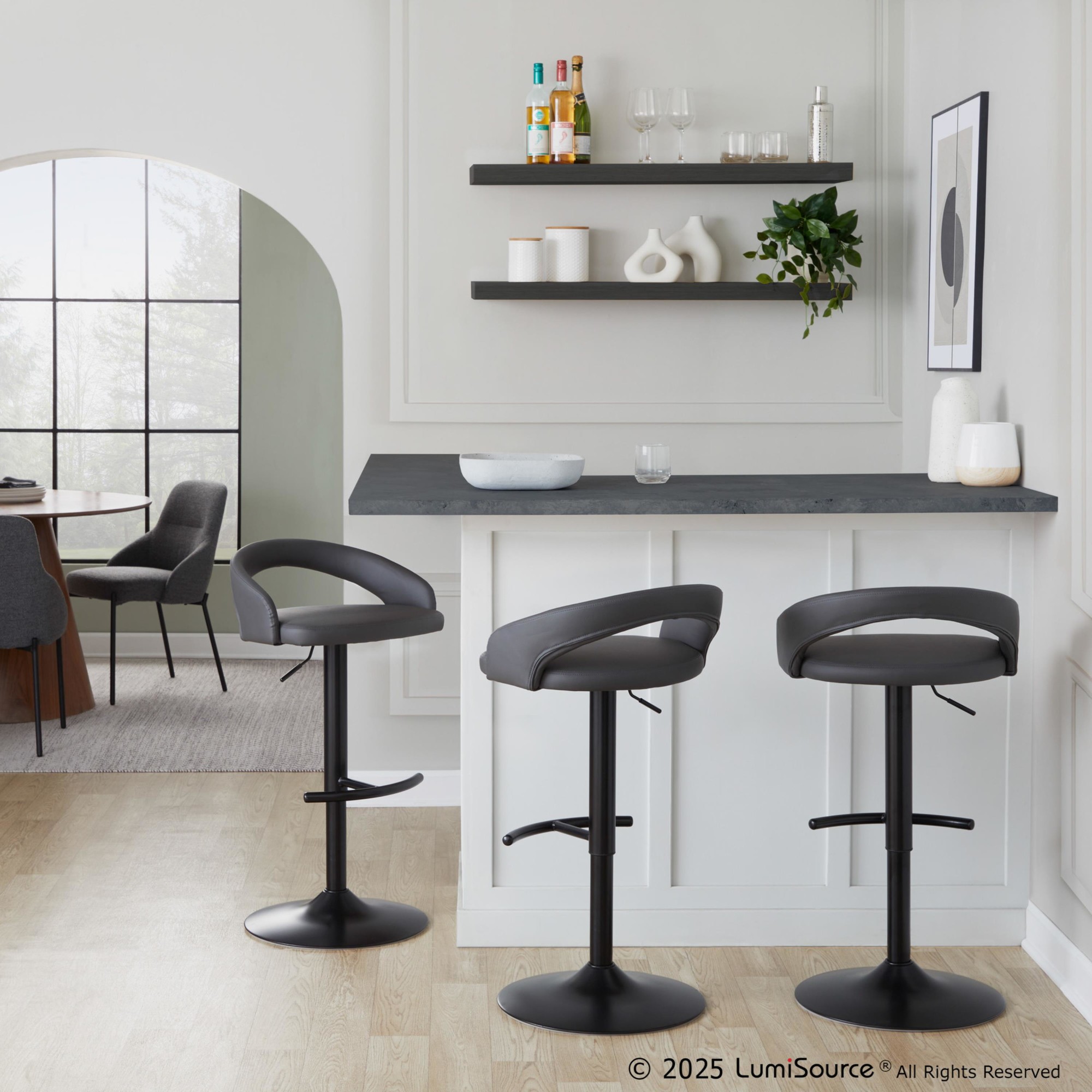 The Grotto Adjustable Barstool by LumiSource features a sleek curved low back design. This design radiates sophistication while modern features like a cushioned seat that swivels and adjustable base with built-in footrest bring this piece into a class all of its own. Available in various color options, choose the one that suits your space best.
