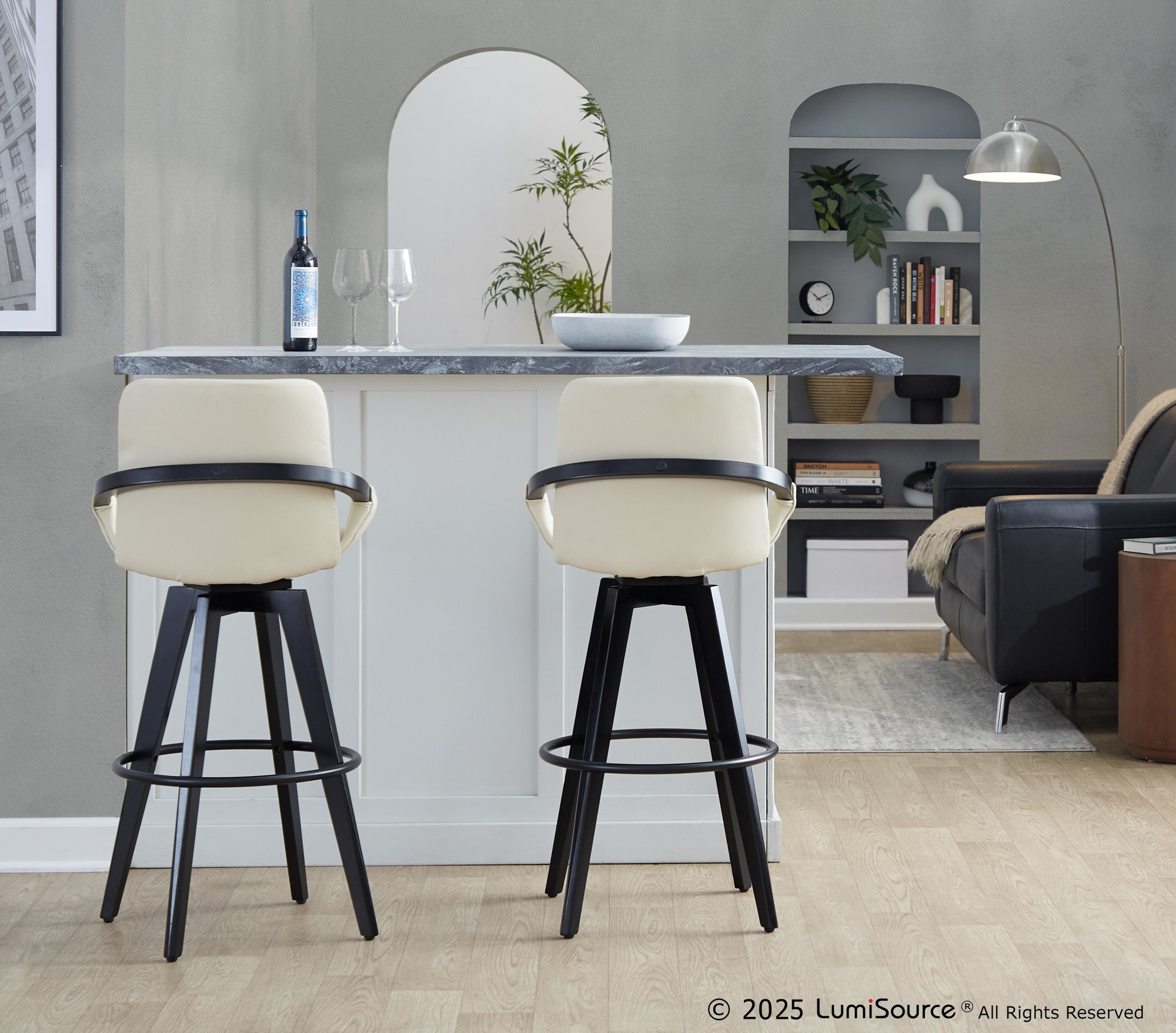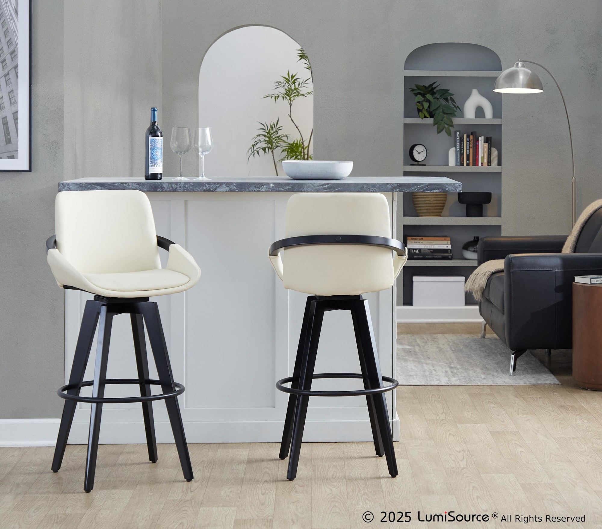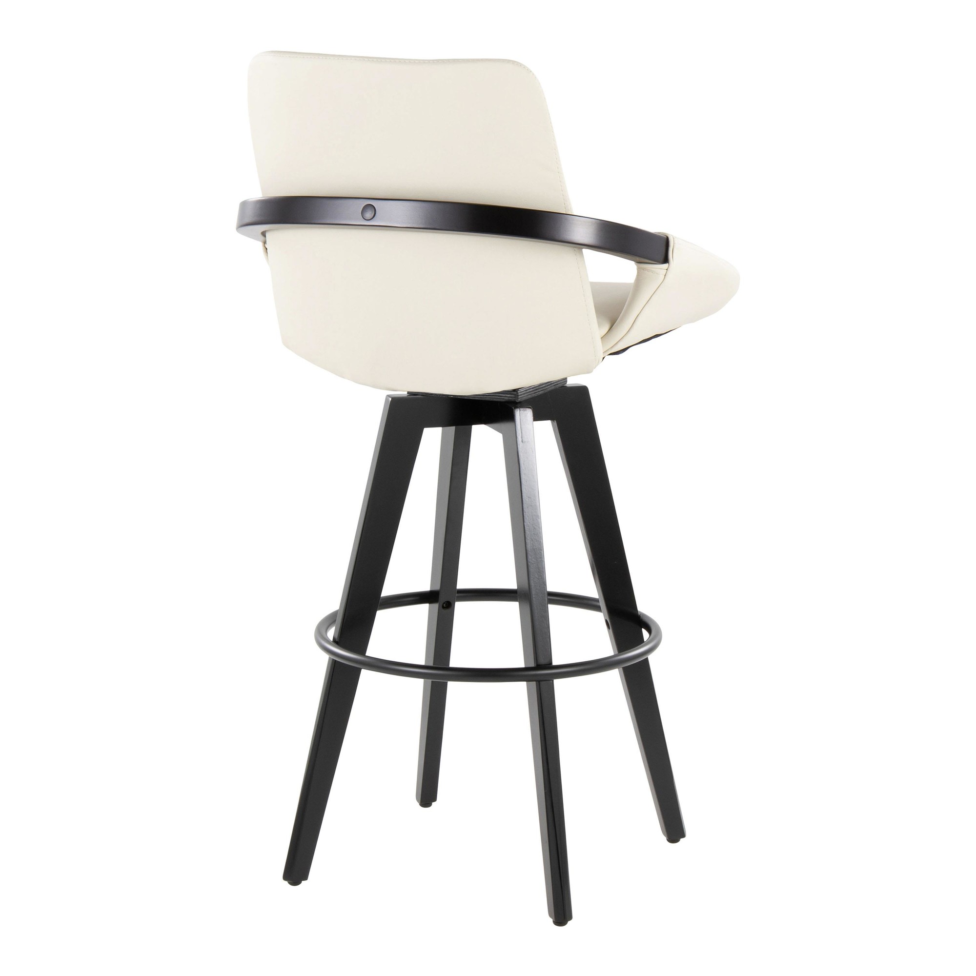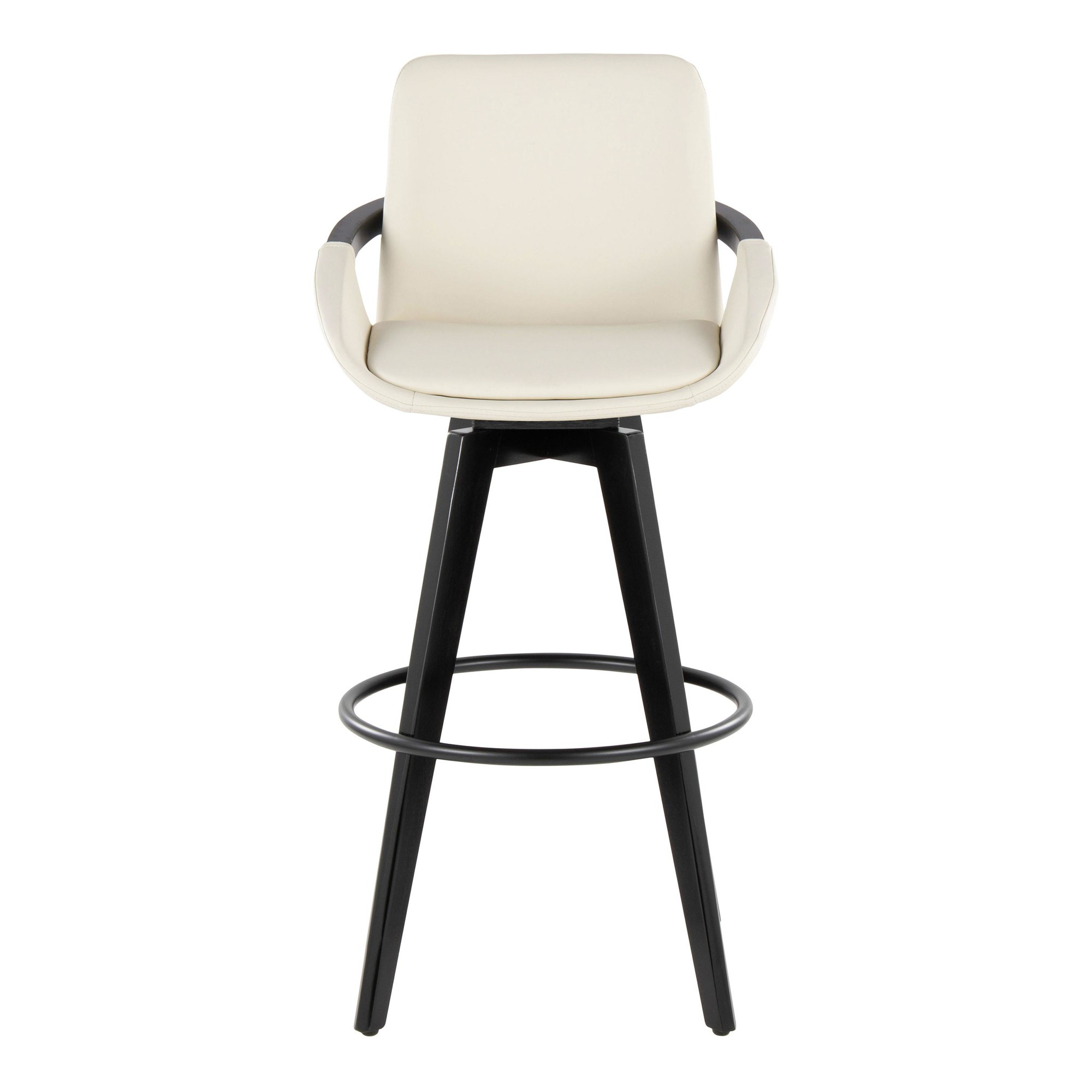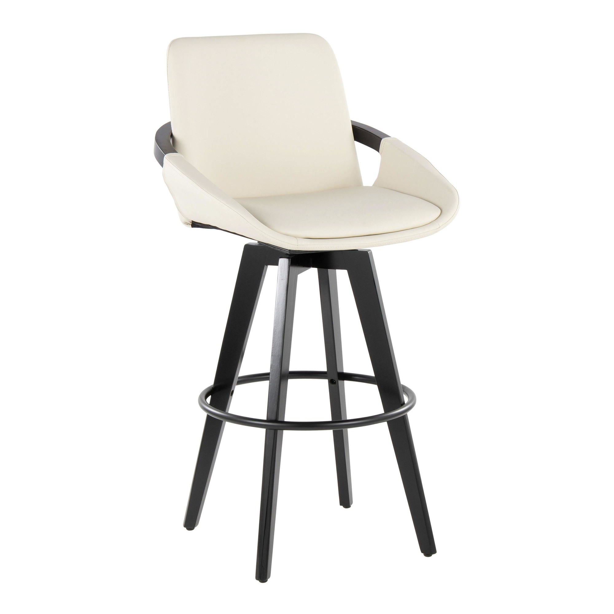 The contemporary design of the Cosmo Fixed-Height Barstool by LumiSource combines style and comfort! An upholstered seat is accented by stylish black wood armrest and legs, with smooth swivel capability. Available in a variety of color combinations, choose the one that fits your space the best.