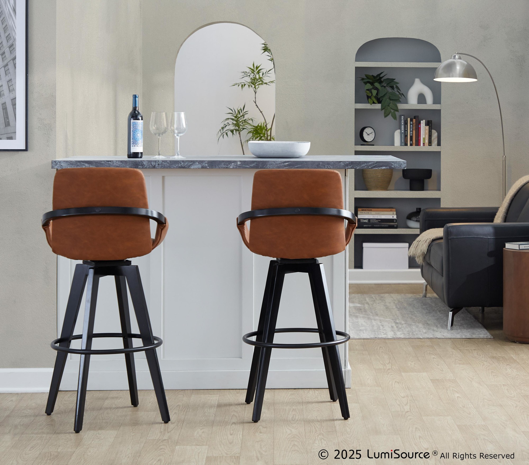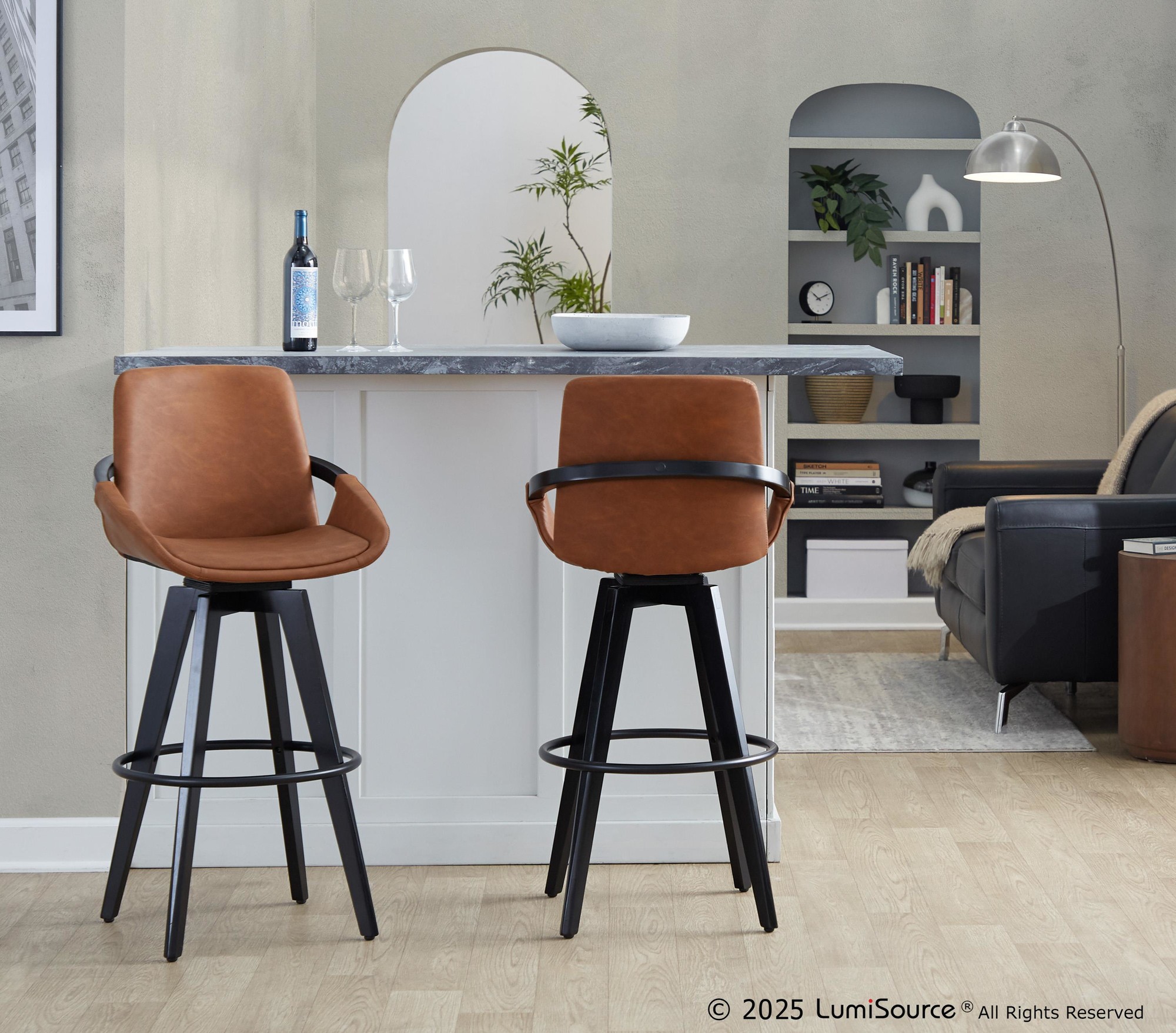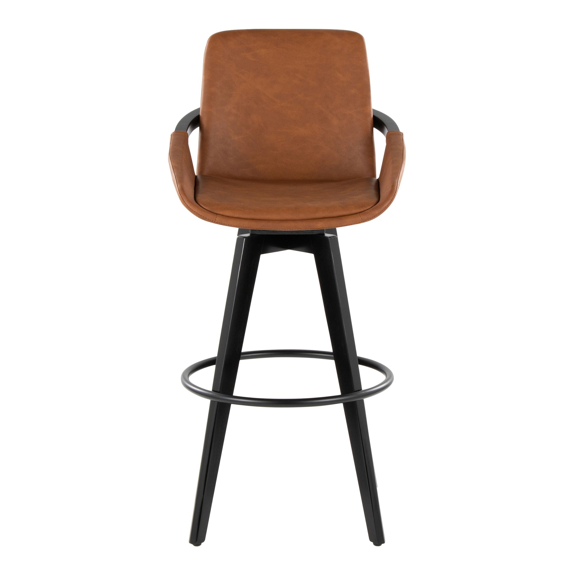 The contemporary design of the Cosmo Fixed-Height Barstool by LumiSource combines style and comfort! An upholstered seat is accented by stylish black wood armrest and legs, with smooth swivel capability. Available in a variety of color combinations, choose the one that fits your space the best.