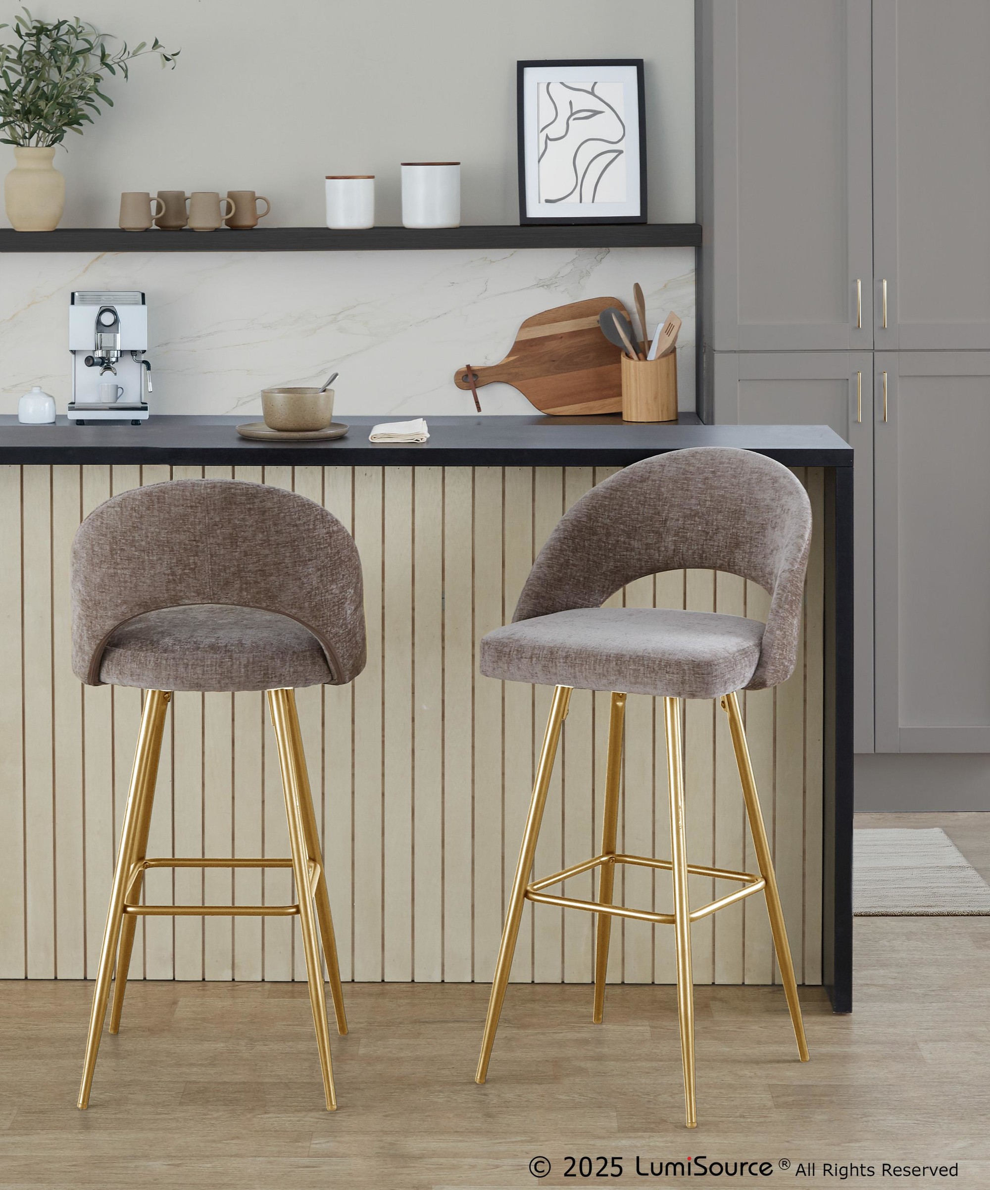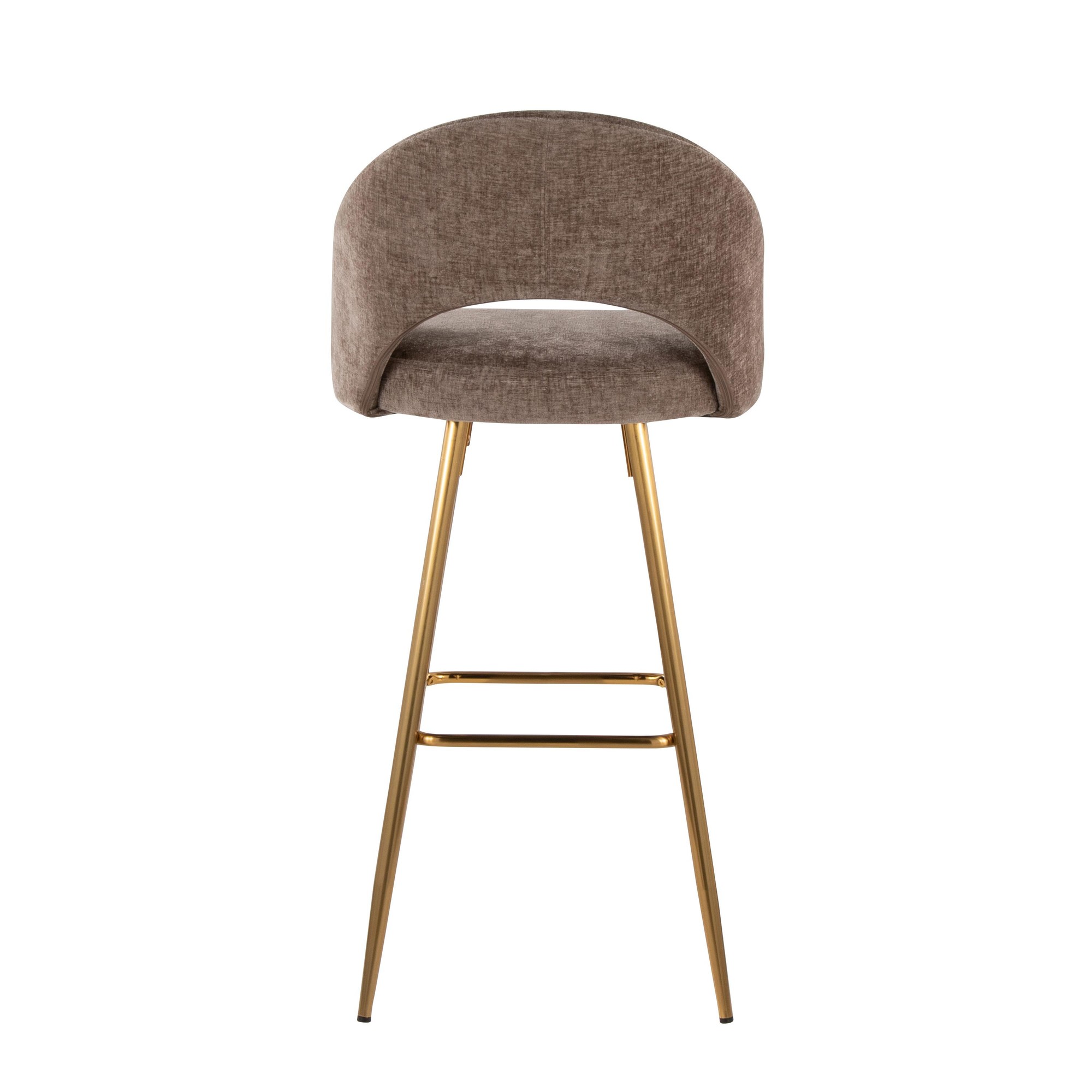 Introducing the Renee Fixed-height Barstool by LumiSource where modern style meets unparalleled comfort. With a low rounded backrest, comfortable upholstery, and sturdy metal legs with a square footrest, it's the perfect piece for your contemporary dining or bar area. The Renee is available in a variety of upholstery options and colors, so select one that suits your space the best!
