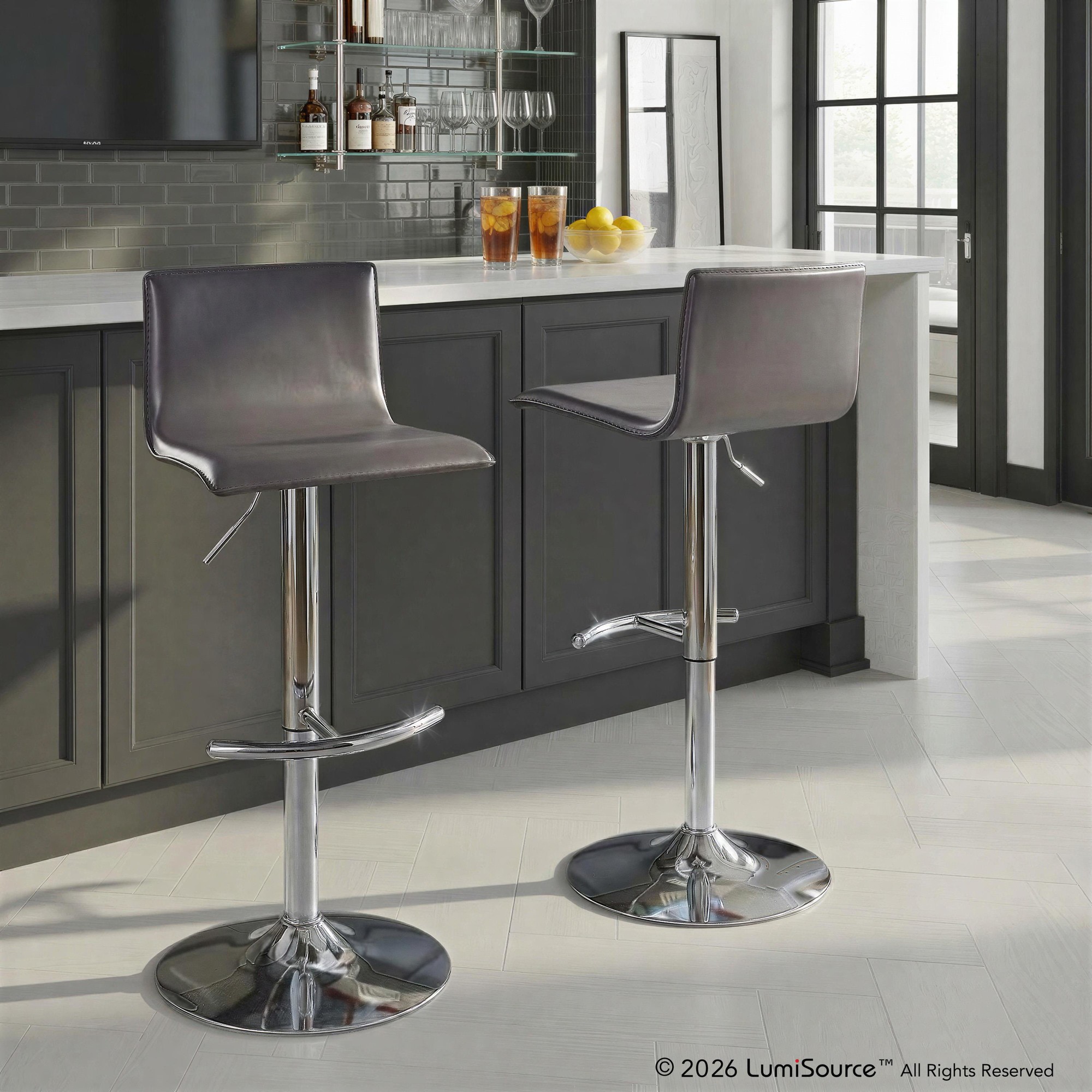Elegant and modern, the LumiSource Mara Adjustable Barstool has a simple design with gorgeous elements. Featuring faux leather upholstery and a metal base with a round t footrest, the Mara Adjustable Barstool is perfect for your kitchen or dining area. Sold in sets of two, pick the color that suits your space the best!
