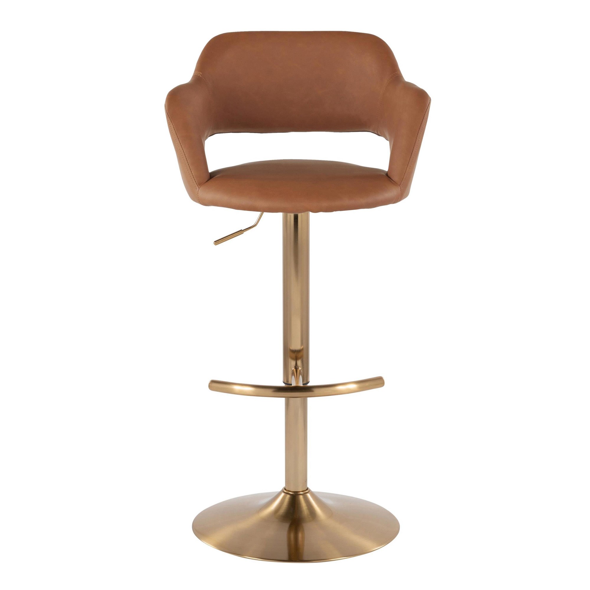 Inspired by contemporary design, the Margarite Adjustable Barstool by LumiSource features a cut-out backrest ergonomically designed to fit your body, swivel seat, armrests for additional comfort, and a built-in footrest for added comfort. Available in a variety of color options, choose the color that suits your space best!