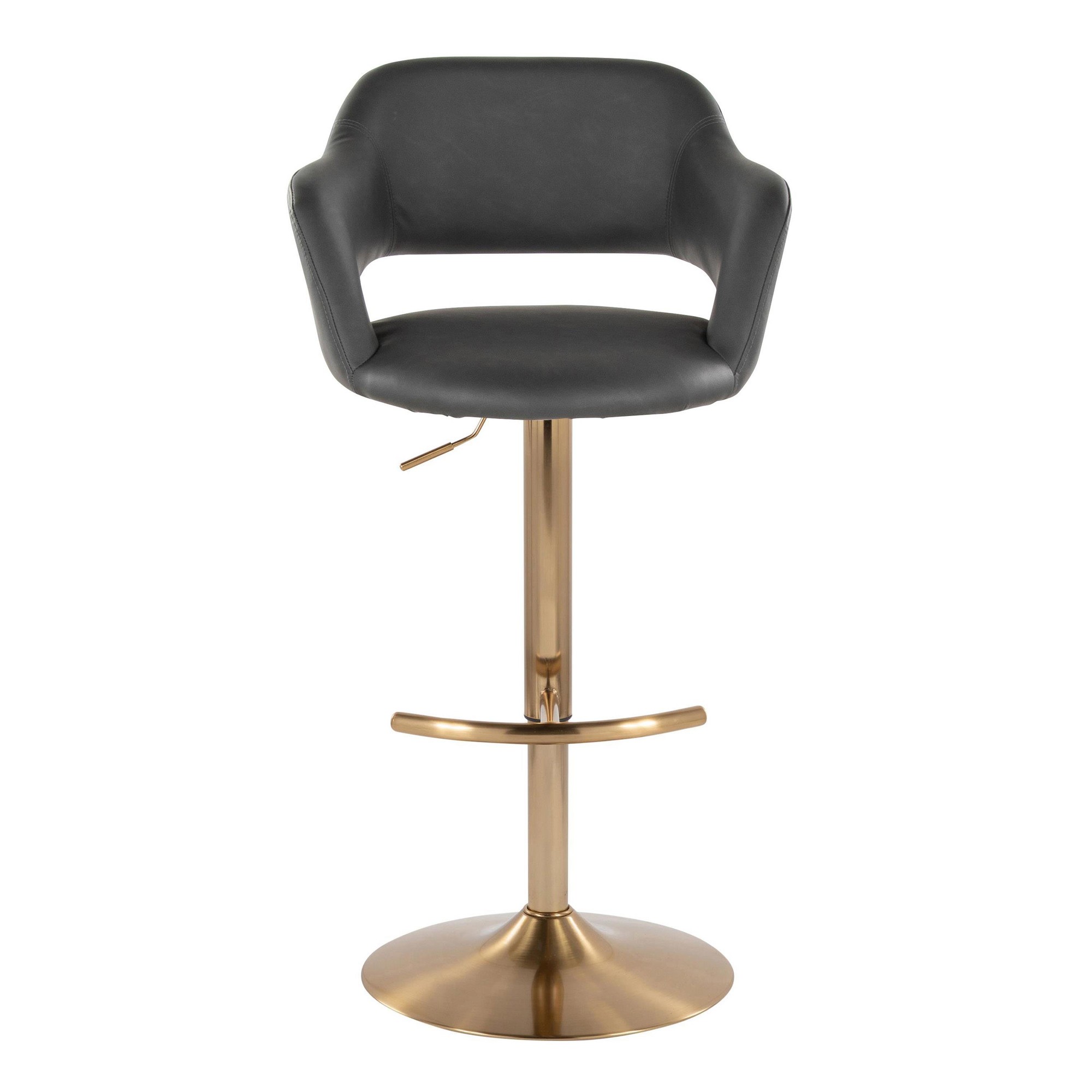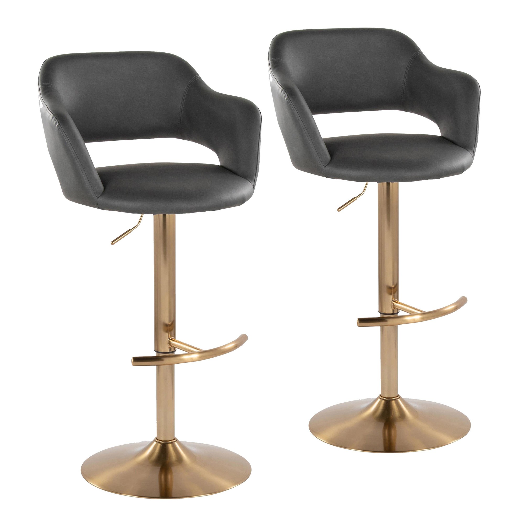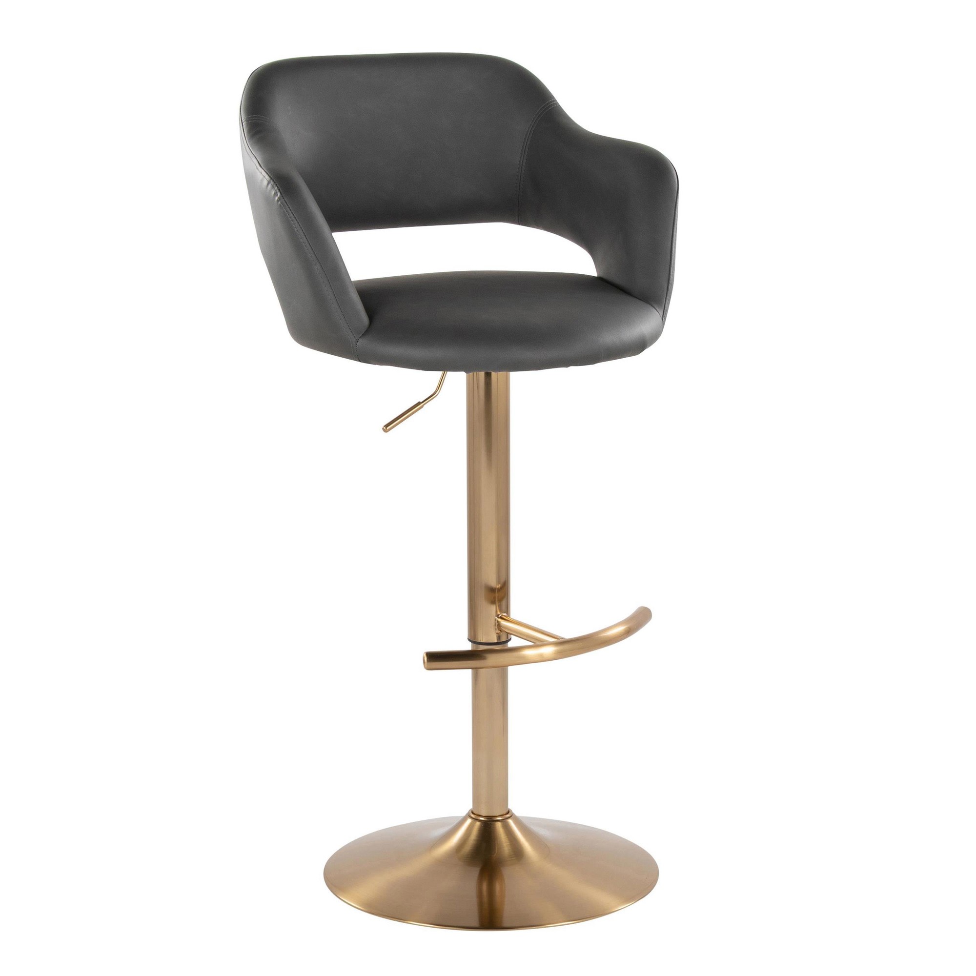 Inspired by contemporary design, the Margarite Adjustable Barstool by LumiSource features a cut-out backrest ergonomically designed to fit your body, swivel seat, armrests for additional comfort, and a built-in footrest for added comfort. Available in a variety of color options, choose the color that suits your space best!