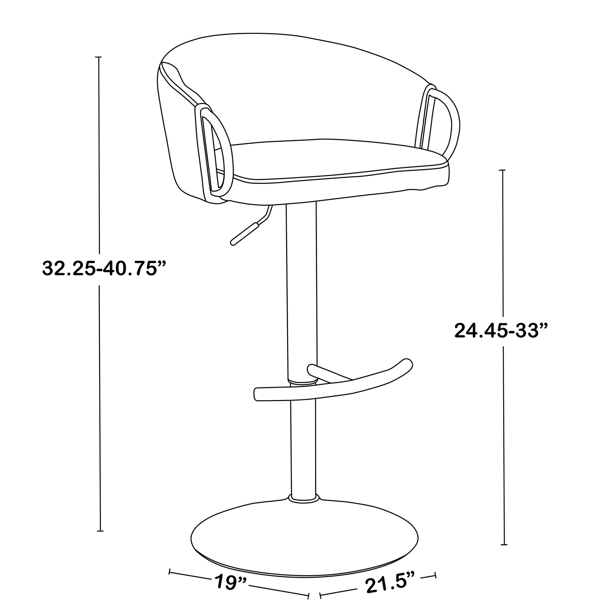 Chic modern style shines bright with the unique design of the Claire Adjustable Bar Stool by LumiSource. With a low rounded backrest, sleek gold armrests, and a gold metal base, it's the perfect piece for your contemporary dining or bar area. The Claire Adjustable Bar Stool has smooth swivel capability with lush velvet upholstery. Available in various bold colors.