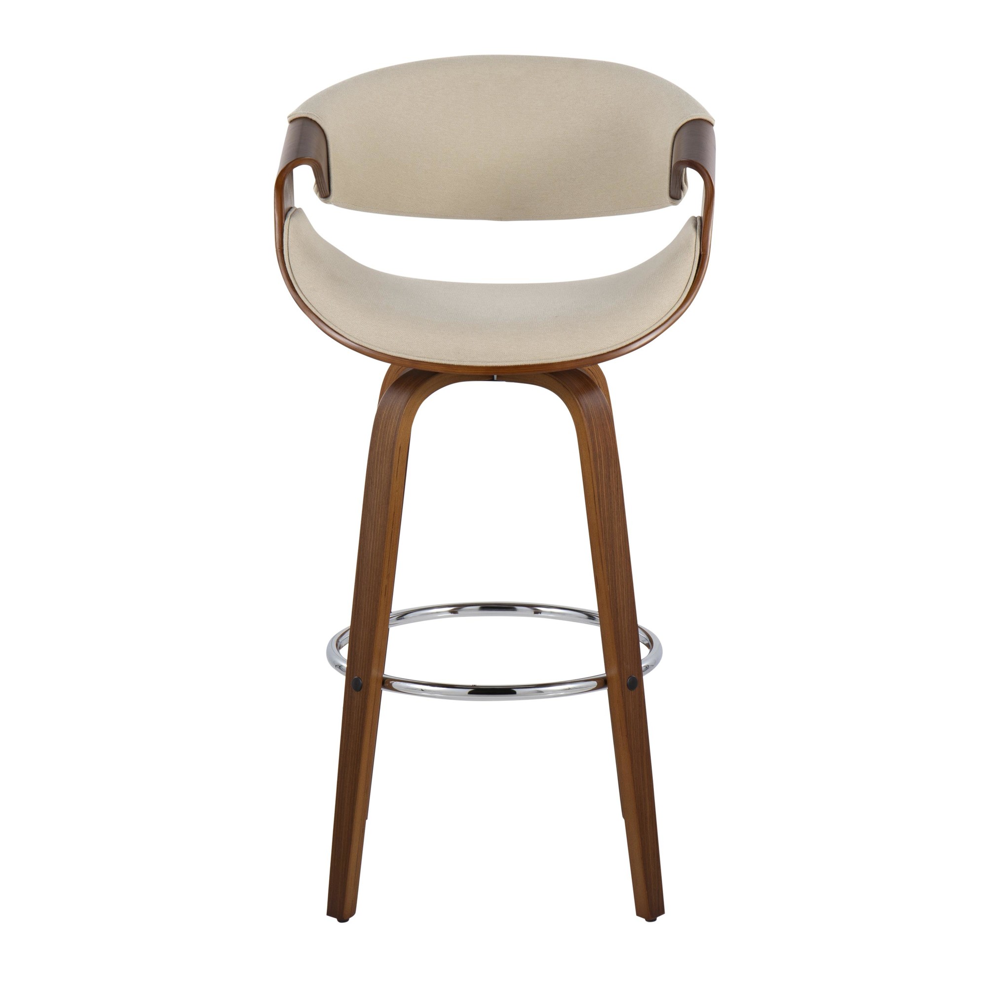With a curvaceous dose of Mid-Century style, this unique design will look great in a kitchen or bar area. Featuring a walnut finished stationary wood frame, luxurious woven fabric upholstery, swiveling seat, and stylish armrests. The Curvini Bar Stool by LumiSource is available in various finishes, choose the color that fits your space the best.