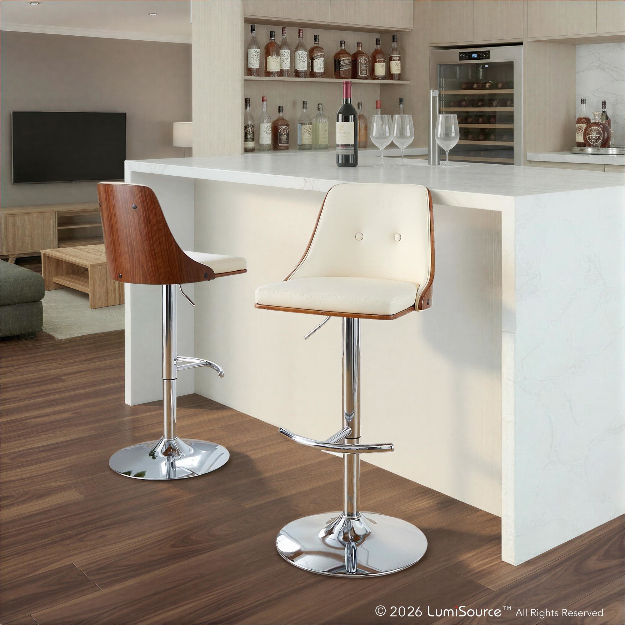 Inviting and refined with a hint of heritage design, the Gianna Adjustable Barstool by LumiSource will add a touch of class to any space. The Gianna features a contoured wooden back, a tufted faux leather swivel seat, and a built-in footrest that makes this stool both stylish and comfortable. The Gianna stool comes in a variety of colors and bases to select from, so choose one that fits your space the best!