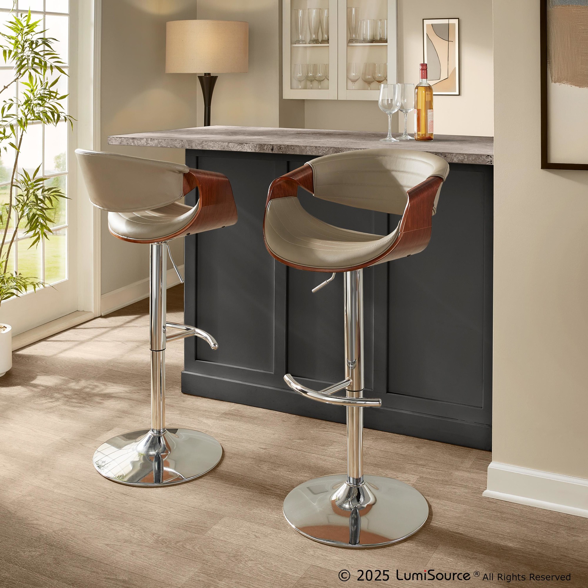 The unique design and silhouette of the Symphony Adjustable Barstool by LumiSource will look great in any space! The upholstery is accented with vertical tufting and the stool features both a swivel functionality and a footrest creating a practical and stylish stool. The Symphony comes in a variety of colors, so select one that fits your style today!