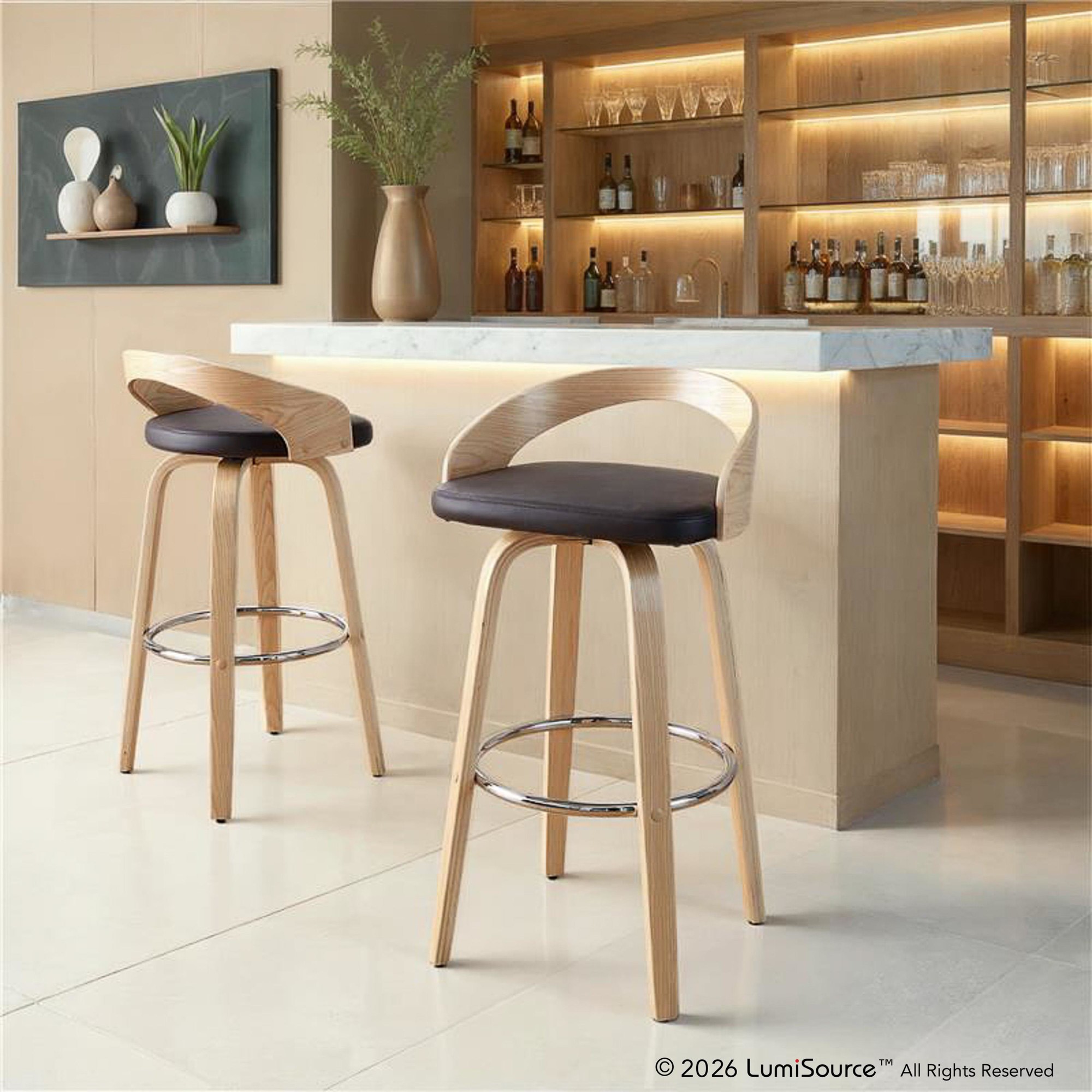 The Grotto Fixed-Height Barstool by LumiSource features a curved low back and rounded legs. This design radiates sophistication while modern features like a cushioned seat that swivels and wood legs with built-in footrest bring this piece into a class all of its own. Available in various color options, choose the one that suits your space best.