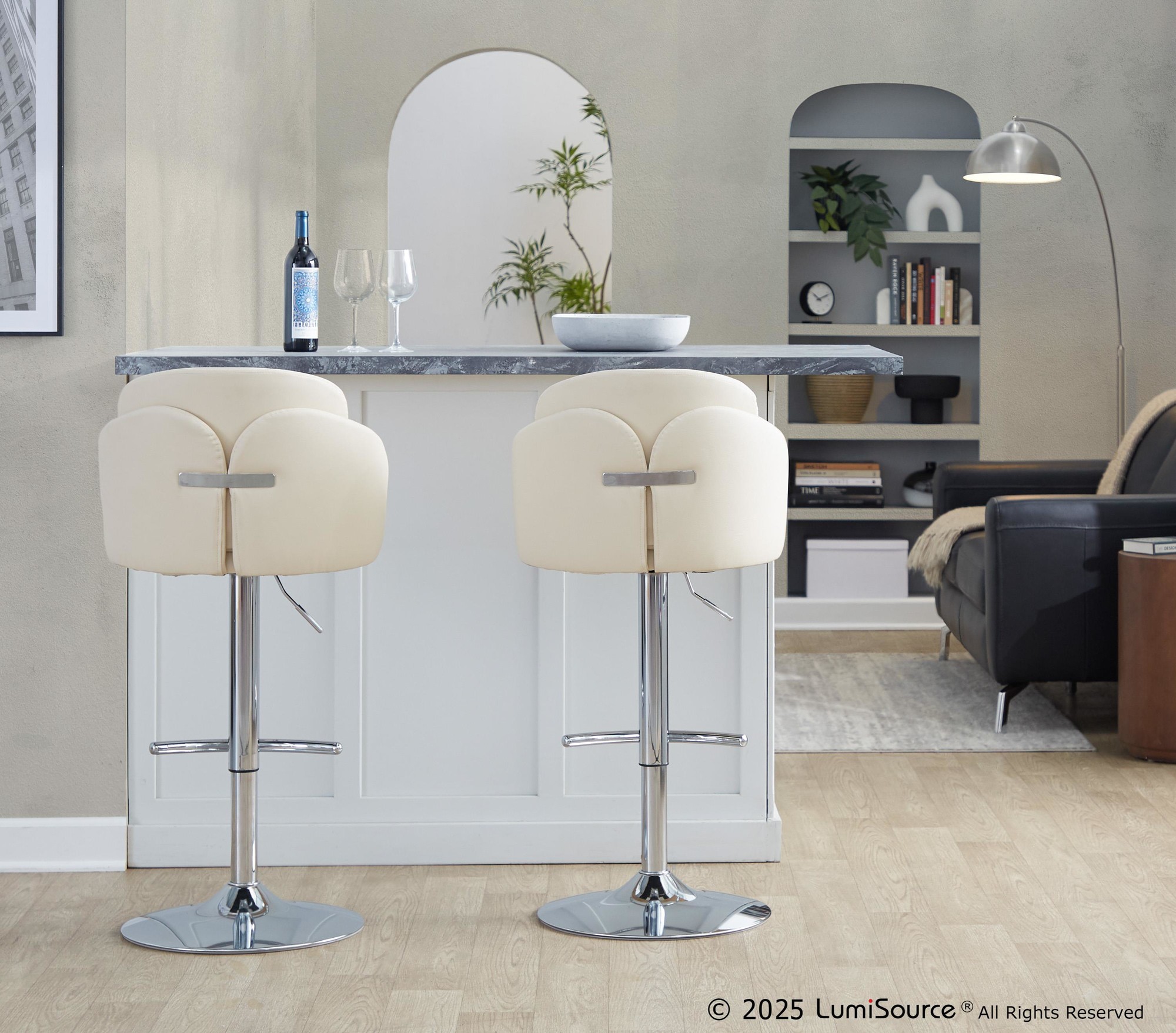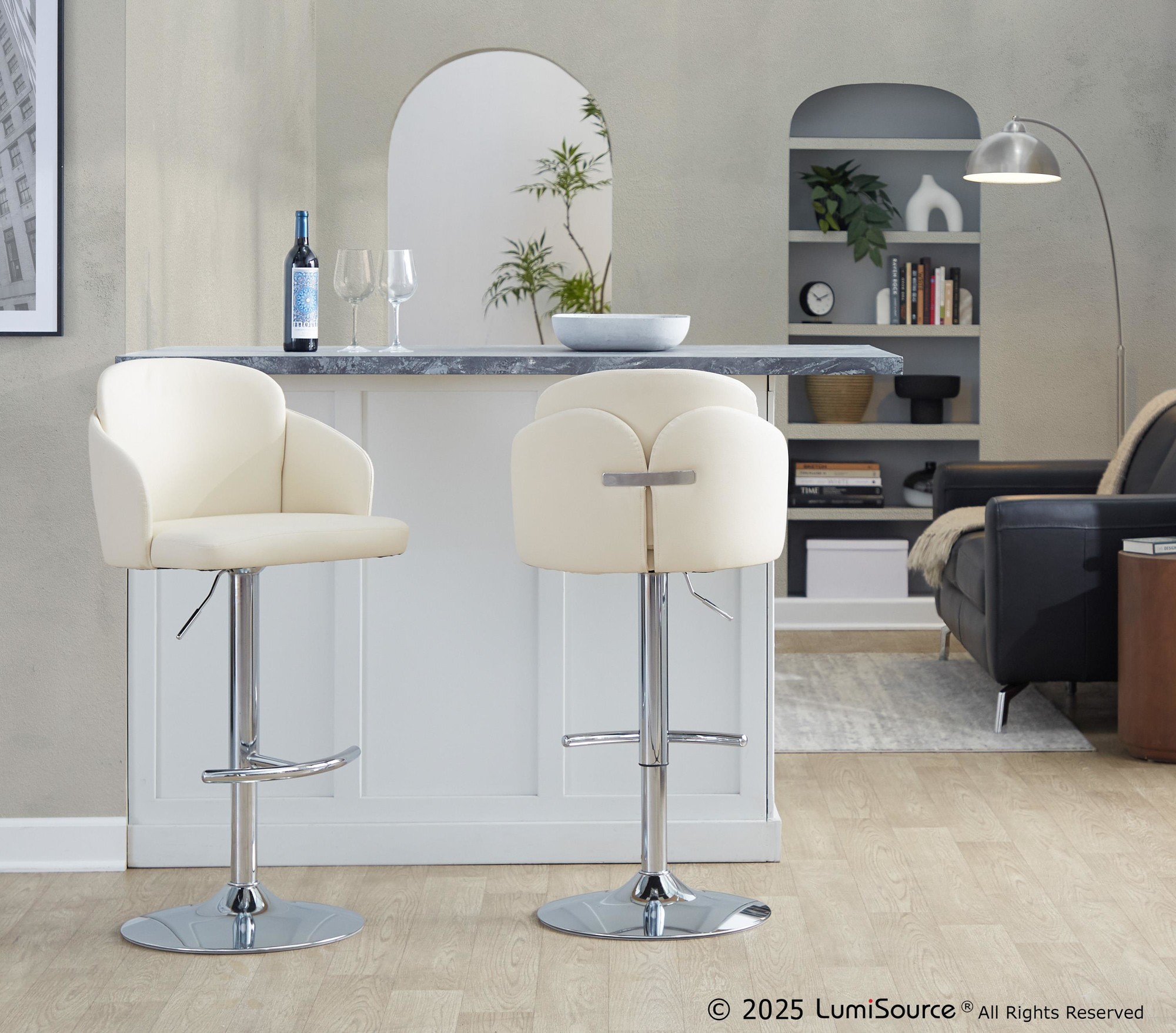 Elegant and simple, the Dahlia Adjustable Barstool by LumiSource will furnish any eating area with style. Featuring a sleek upholstered seat accented by metal details and adjustable swivel base, the Dahlia blends practicality with sophistication. Available in a variety of color and material combinations, choose the one that fits your space best.