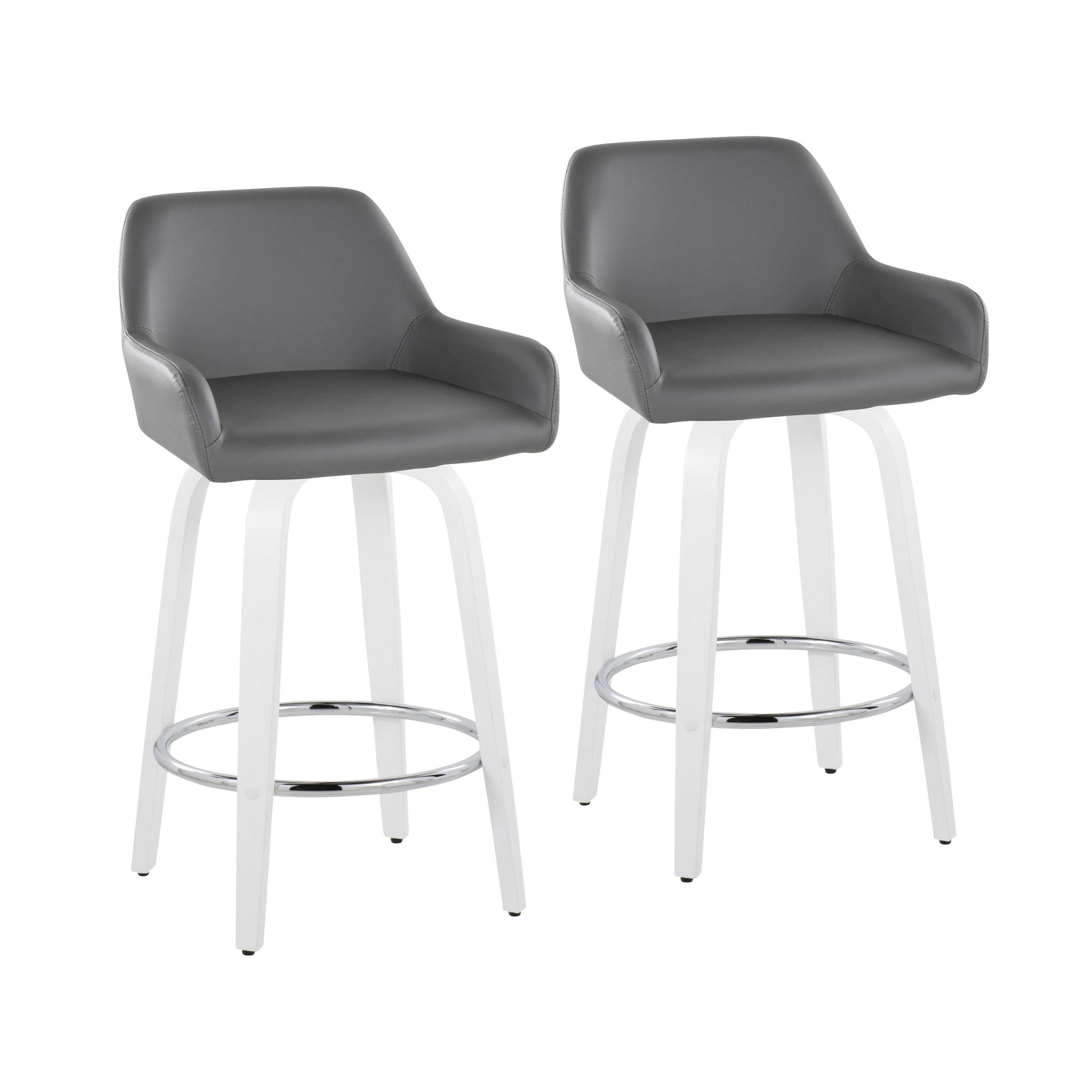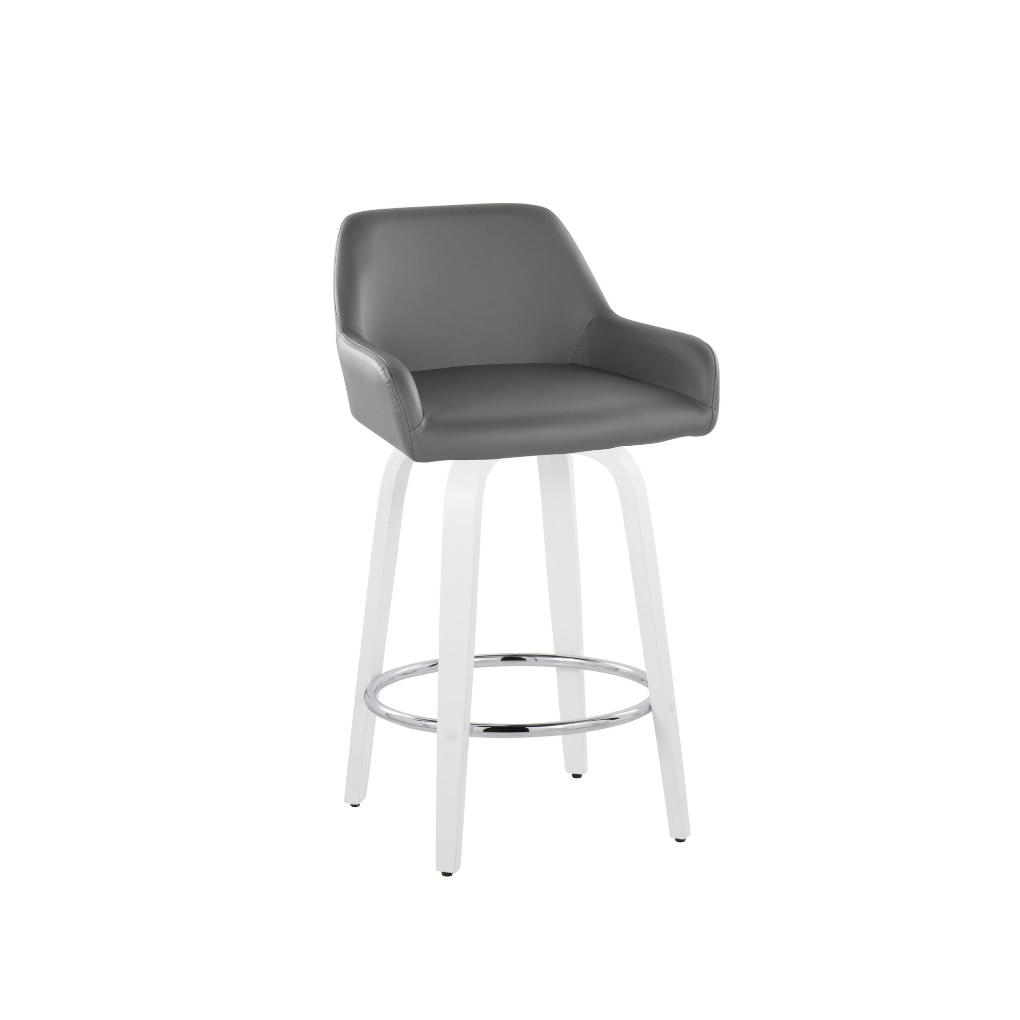 Add stylish and comfortable seating to your kitchen or counter area with the contemporary charm of the Daniella Fixed-Height Counter Stool by LumiSource. Featuring a sleek upholstered swivel seat, padded backrest, and stylish bent wood legs, this stool is sure to catch eyes. The Daniella is available in a variety of upholstery colors that are sure to elevate any space.