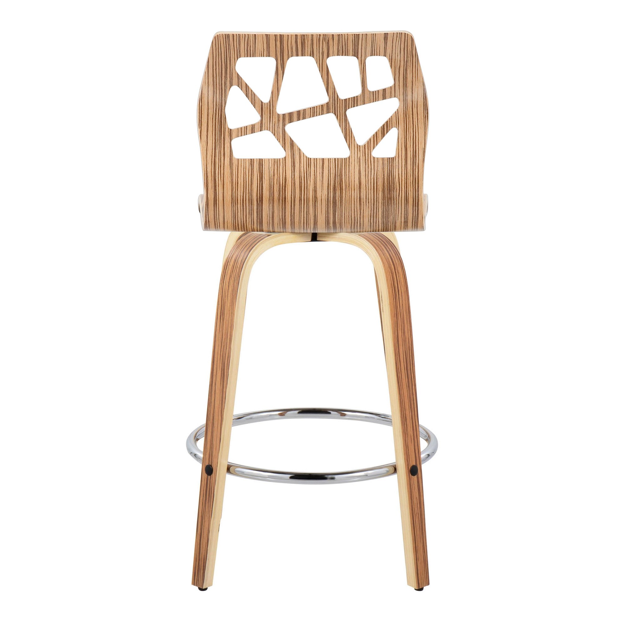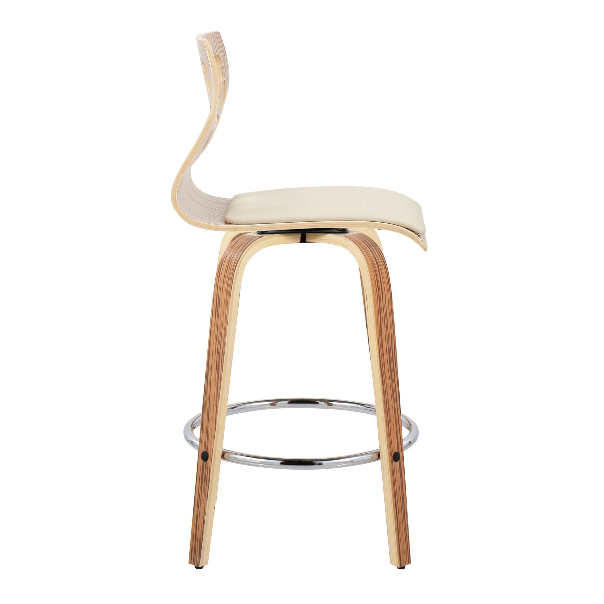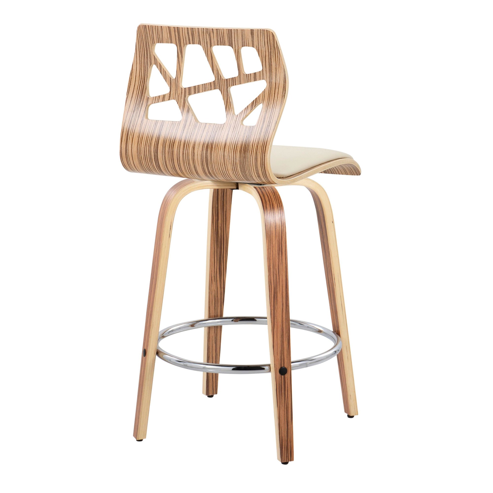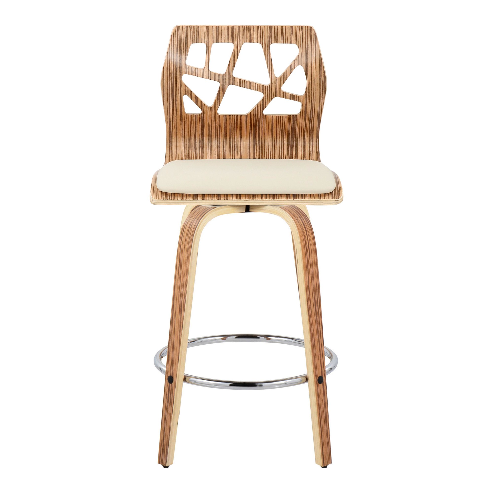 The curved wood frame and cut-out backrest of the Folia Fixed-Height Counter Stool by LumiSource will add a touch of style to your counter area. Featuring a stationary frame with a zebra wood finish, a round built-in footrest, and an upholstered padded seat, the Folia Counter Stool is stylish and comfortable. Available in various color options, choose the one that suits your space best!
