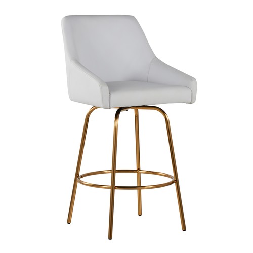 Elegant and simple, the LumiSource Hannah Fixed-Height Counter Stool will furnish any eating area in style. Featuring sleek bent wood legs, a comfortable padded upholstered seat, and a decorative handle adorning the seat back, the Hannah will elevate any space with its satisfying transitional design. Available in a variety of upholstery colors and finishes, choose the one that fits your space best.