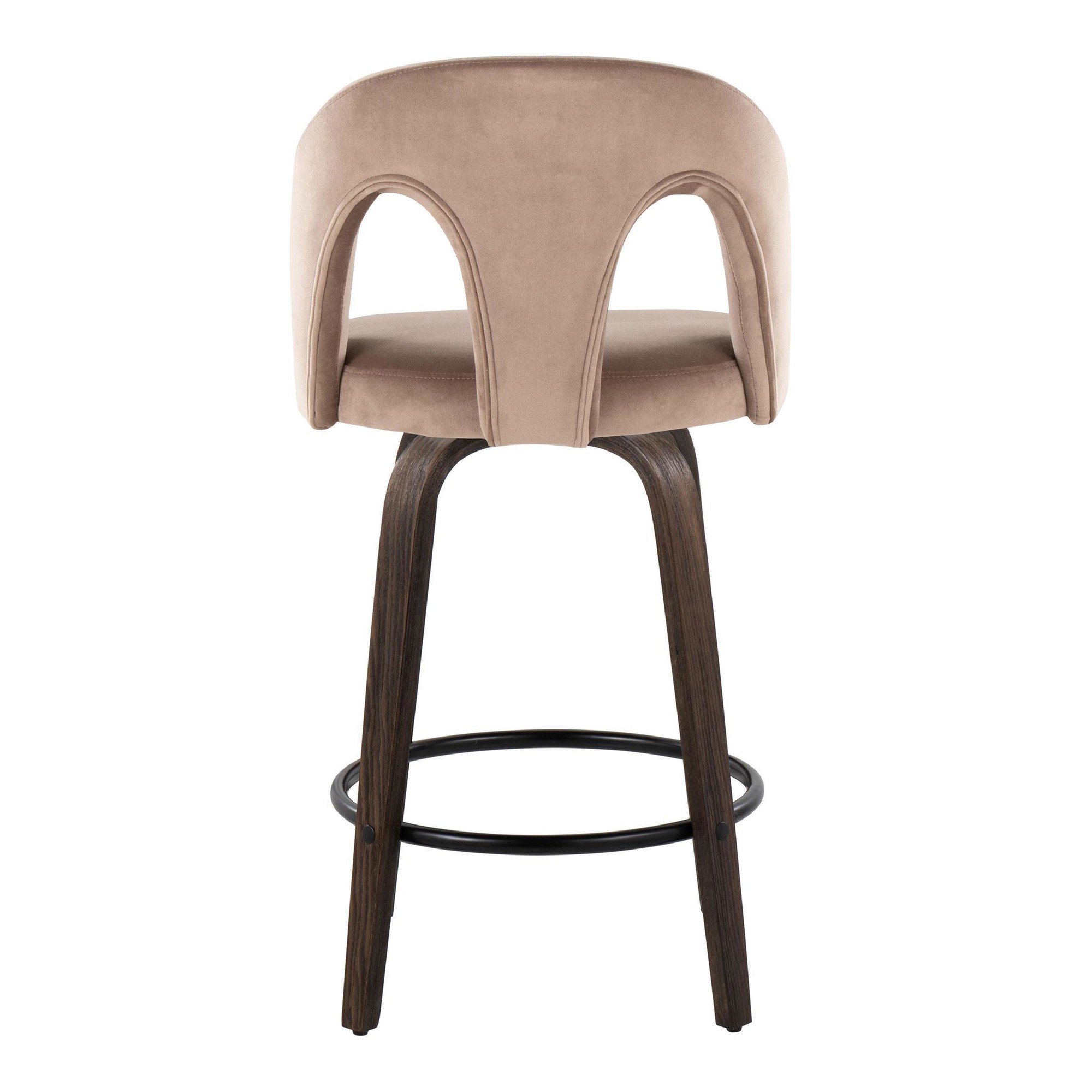 Introducing the Ava Upholstered Fixed-Height Counter Stool by LumiSource, where contemporary design meets unmatched comfort. Featuring a padded upholstered seat with a stylish arched cut-out backrest and sleek bentwood legs, this stool is the perfect eye catching piece to elevate your kitchen or bar area. A unique visual style that doesn't compromise comfort! Available in various color options, choose the one that suits your space best.