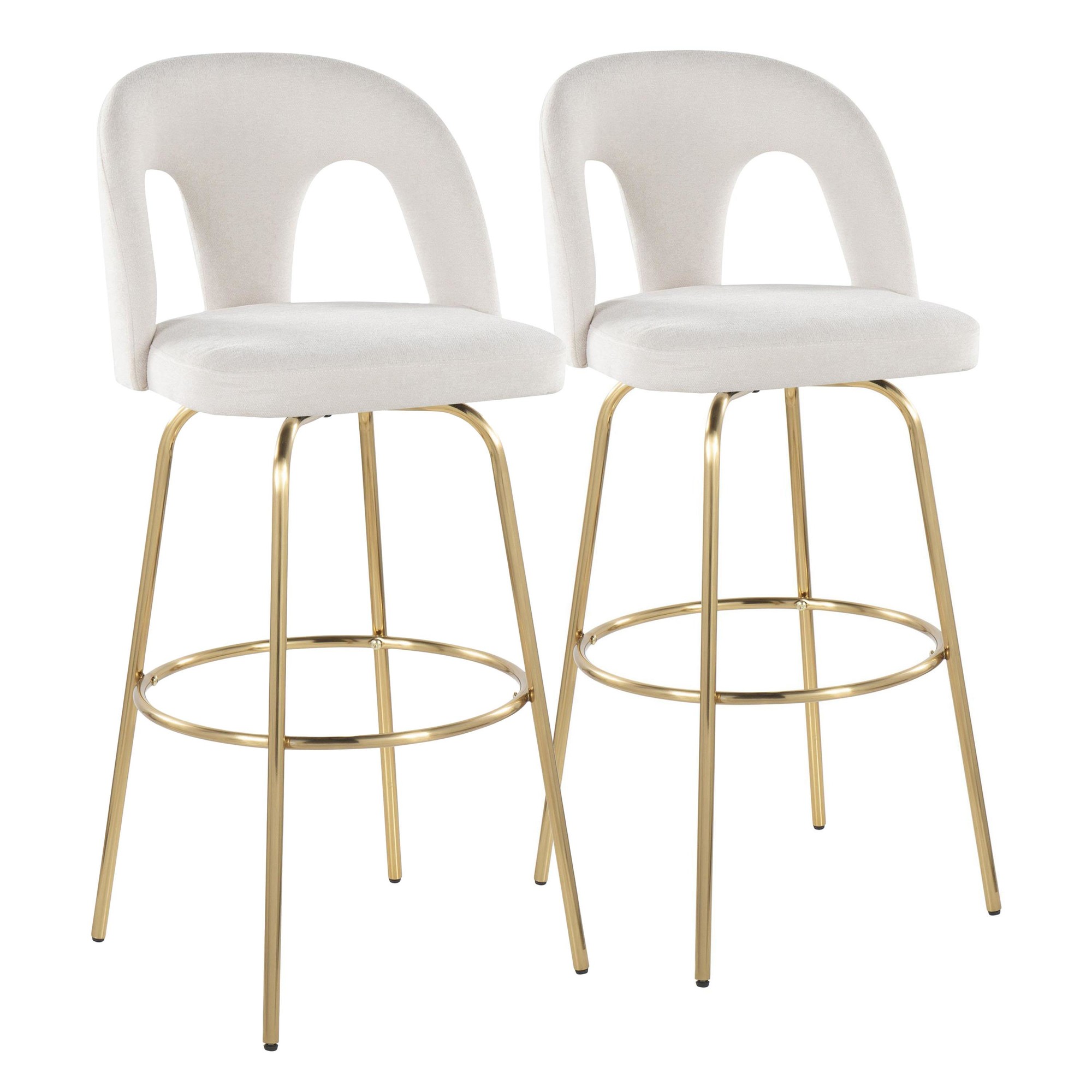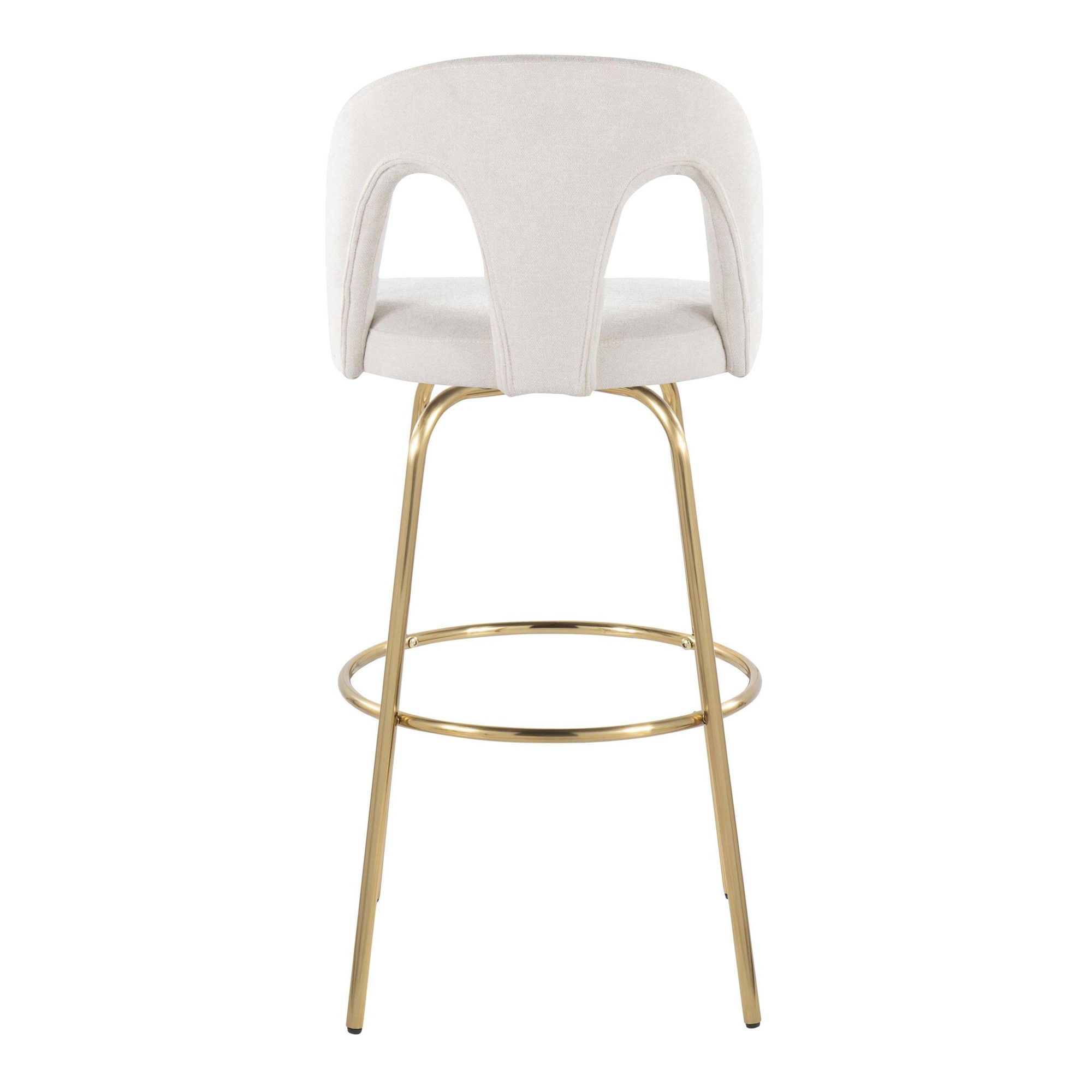 Introducing the Ava Upholstered Fixed-Height Barstool by LumiSource, where contemporary design meets unmatched comfort. Featuring a padded upholstered seat with a stylish arched cut-out backrest and sleek metal legs, this stool is the perfect eye catching piece to elevate your kitchen or bar area. A unique visual style that doesn't compromise comfort! Available in various color options, choose the one that suits your space best.