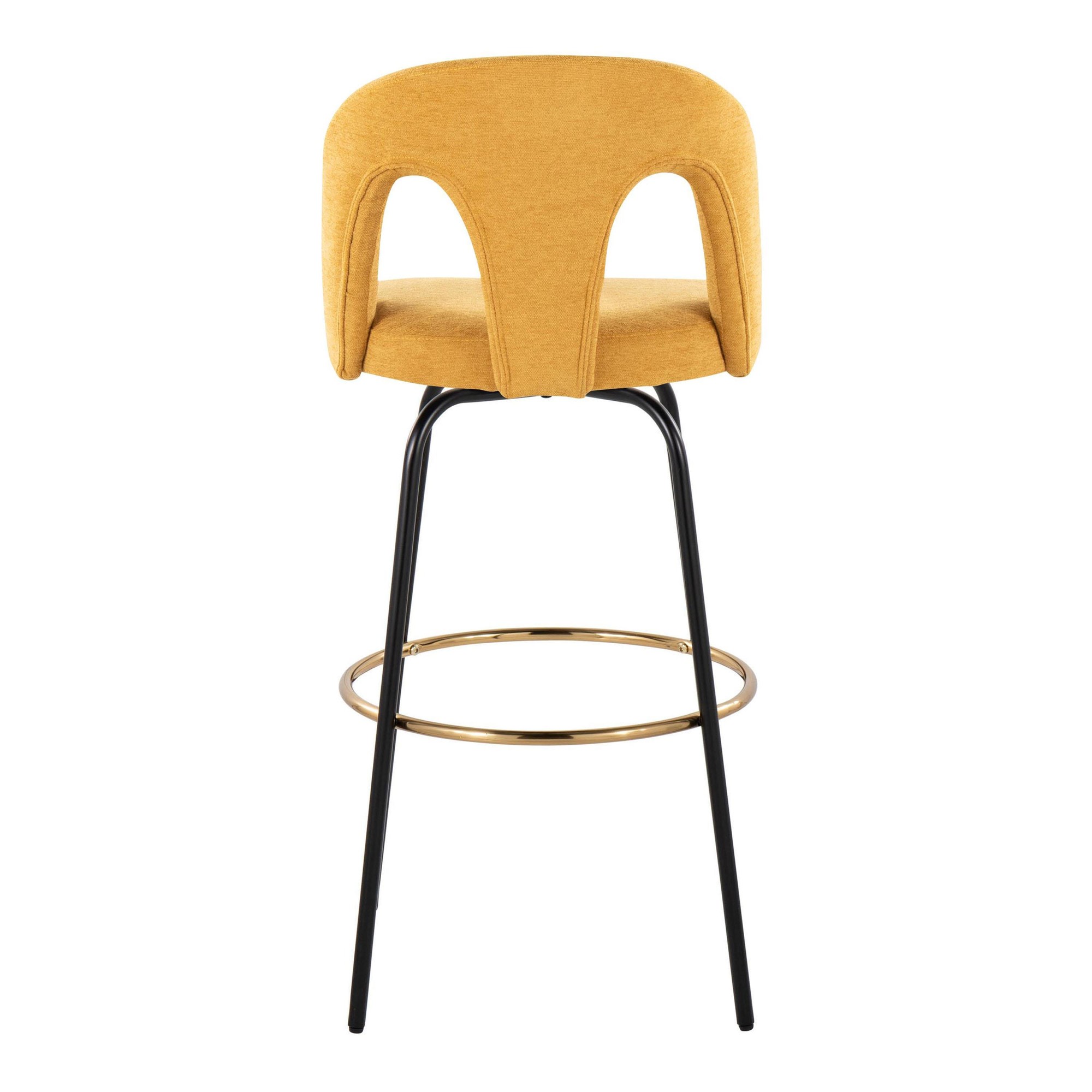 Introducing the Ava Upholstered Fixed-Height Barstool by LumiSource, where contemporary design meets unmatched comfort. Featuring a padded upholstered seat with a stylish arched cut-out backrest and sleek metal legs, this stool is the perfect eye catching piece to elevate your kitchen or bar area. A unique visual style that doesn't compromise comfort! Available in various color options, choose the one that suits your space best.