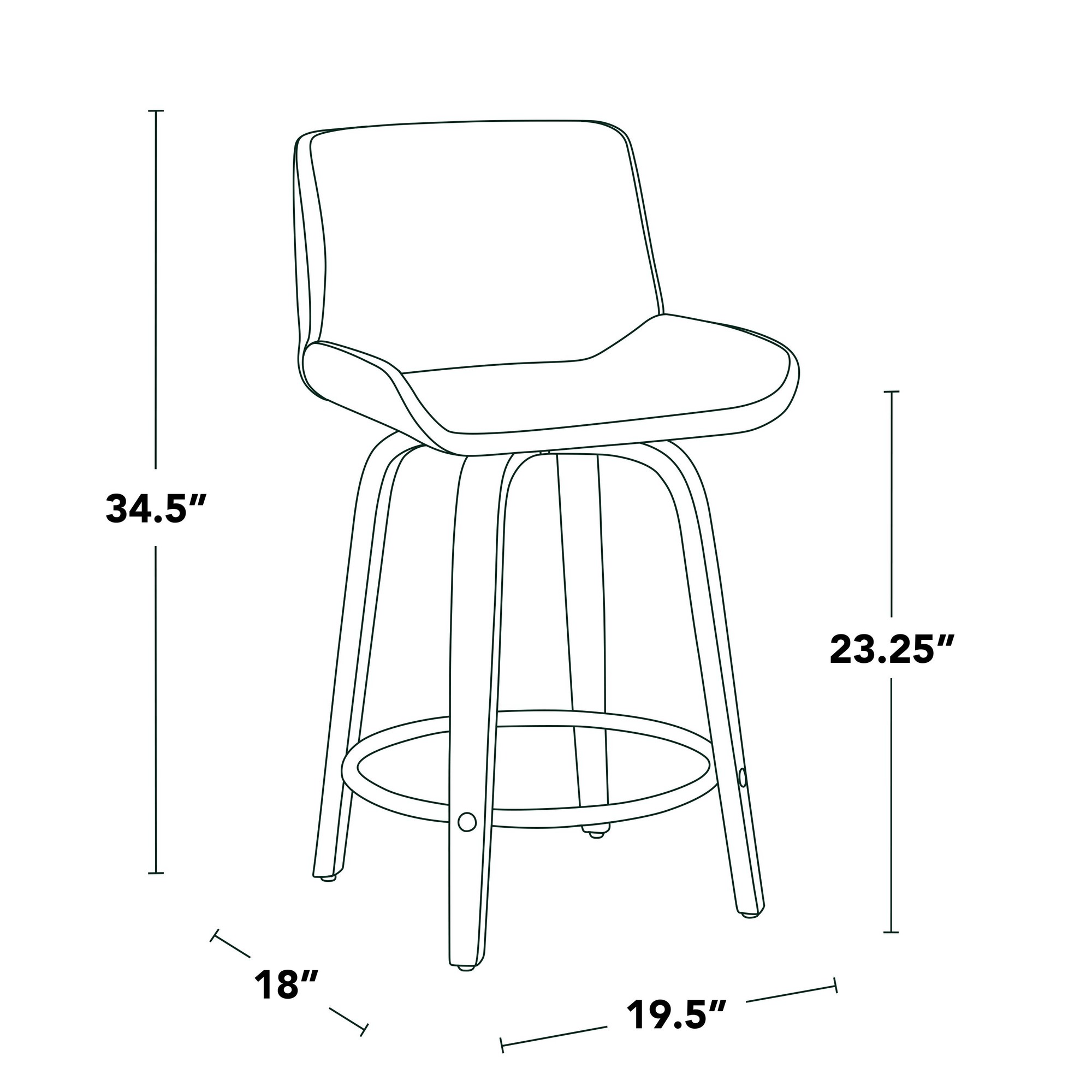 Elevate your space with the sleek Santi Upholstered Fixed-Height Counter Stool by LumiSource. Featuring elegant bent wood legs and a plush faux leather seat, this stool offers modern sophistication with its minimalist armless design. The gently curved back and contoured seat edges provide both style and comfort, making it a perfect addition to your kitchen island or home bar. Available in various upholstery colors and finishes, choose the one that suits your space best!