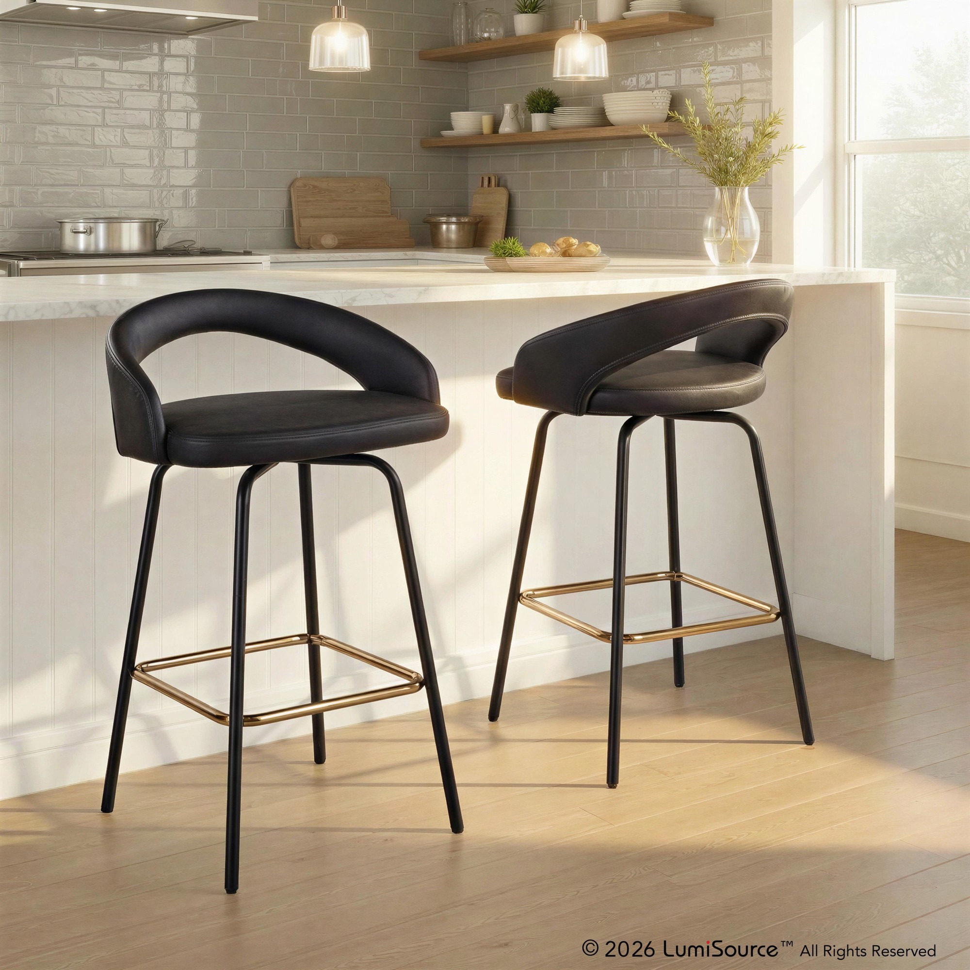 The Grotto Upholstered Fixed-Height Counter Stool by LumiSource brings a refined and versatile seating option to your kitchen. Featuring a fully upholstered seat and a low backrest, these stools offer both style and comfort. The clean-lined design of the frame complements the plush upholstery, allowing the Grotto stools to blend seamlessly into a variety of kitchen decor styles.