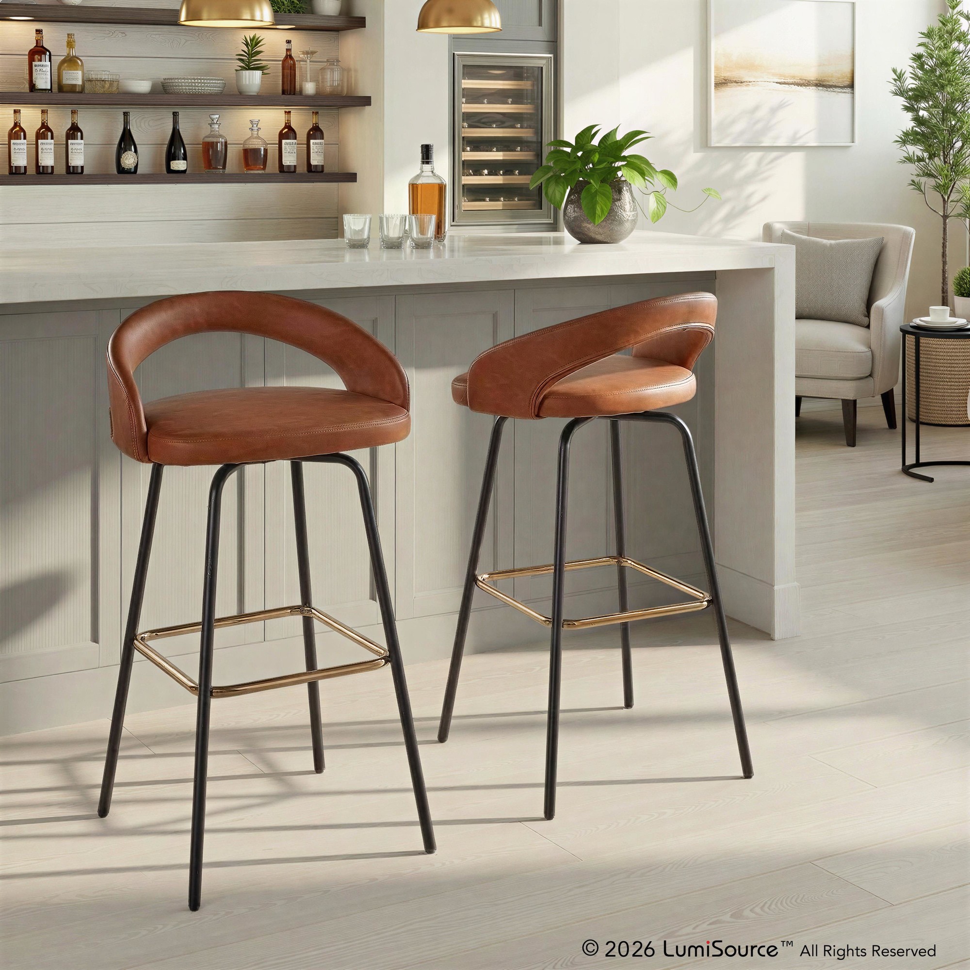 The Grotto Upholstered Fixed-Height Barstool by LumiSource brings a refined and versatile seating option to your kitchen. Featuring a fully upholstered seat and a low backrest, these stools offer both style and comfort. The clean-lined design of the frame complements the plush upholstery, allowing the Grotto stools to blend seamlessly into a variety of kitchen decor styles.
