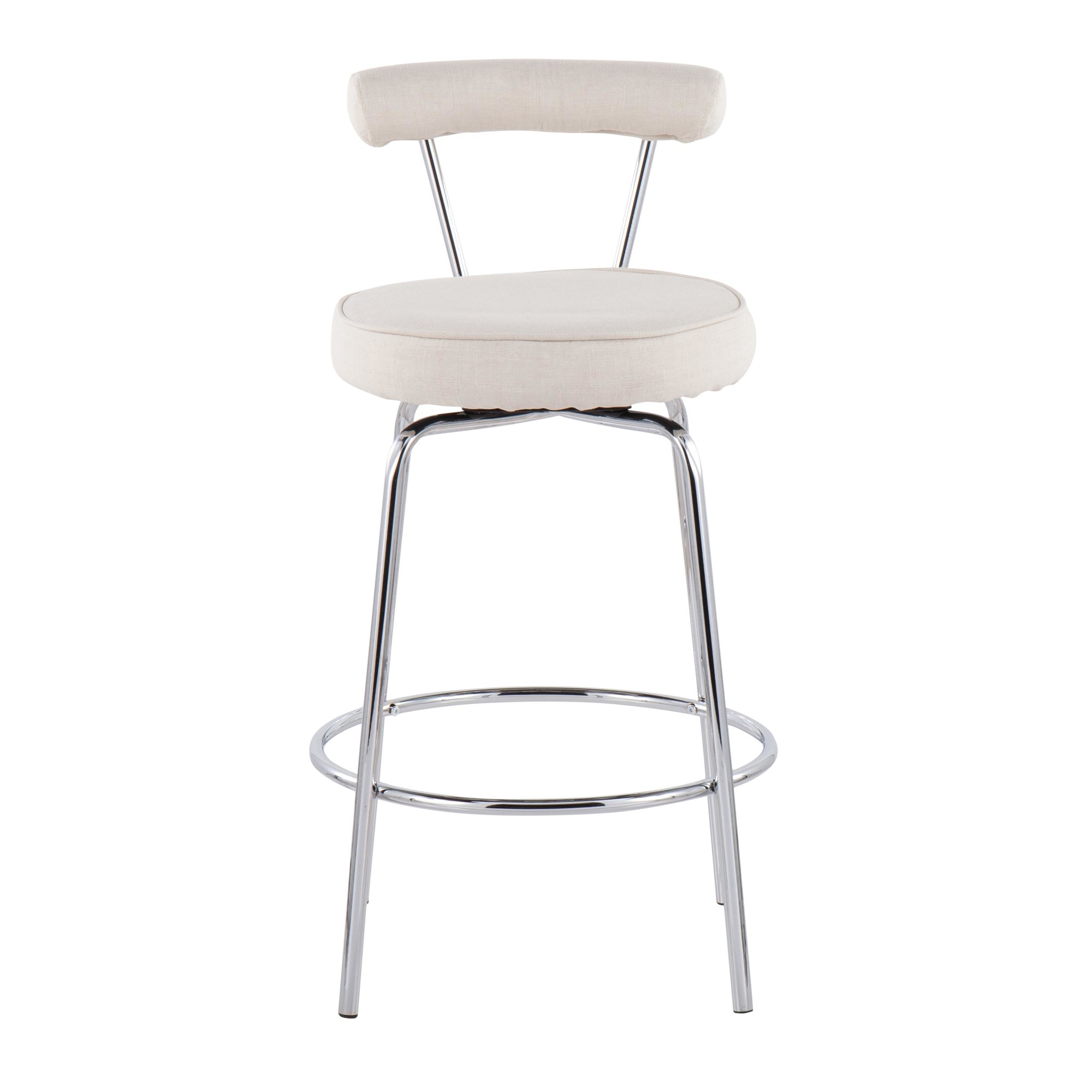 Art deco-inspired, the Rhonda Counter Stool by LumiSource is opulent and striking. The sleek metal frame features tapered legs and a luxe chrome finish. A plush fabric upholstery completes the look. Choose from various colors and finishes to complement your dining or counter area.