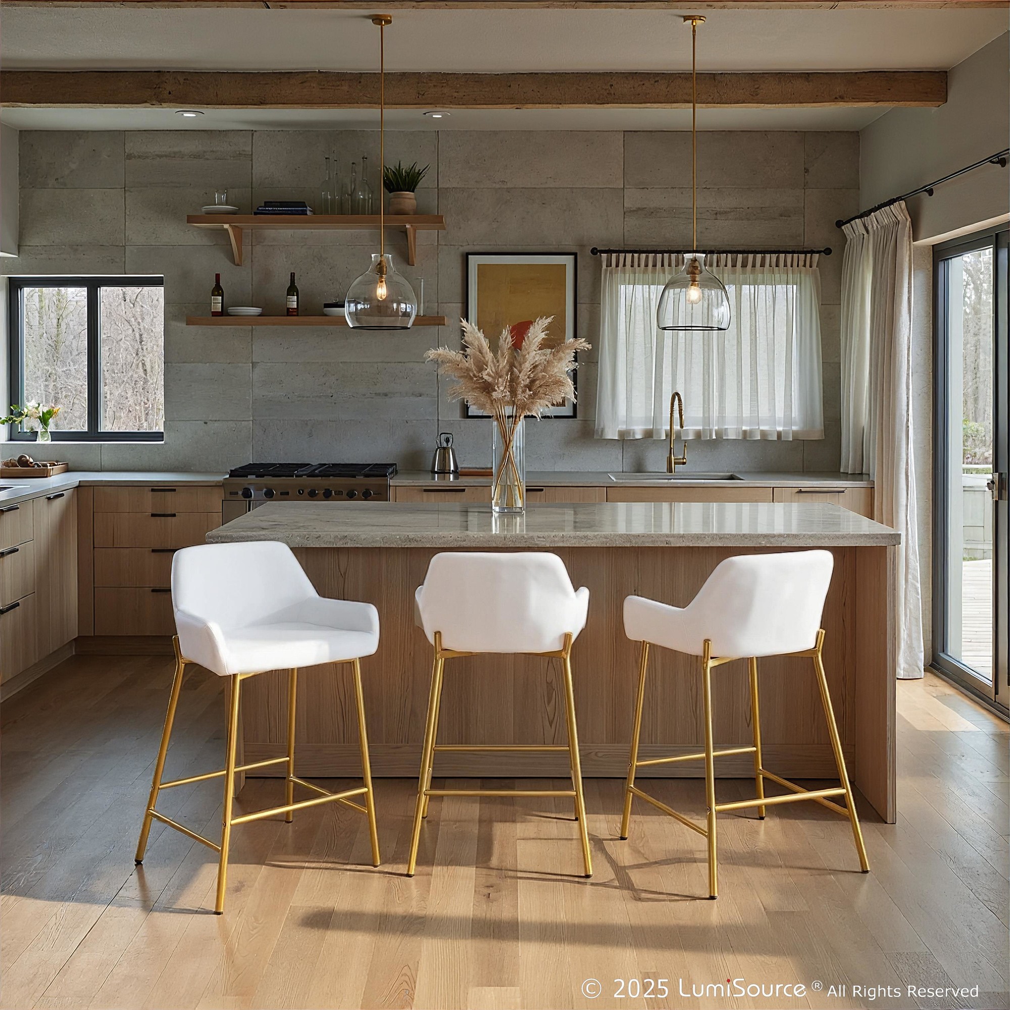 Add stylish and comfortable seating to your kitchen or counter area with the contemporary charm of the Daniella Counter Stool by LumiSource. Featuring a sleek upholstered padded seat, backrest, and a unique metal frame. The Daniella is available in a variety of upholstery colors.