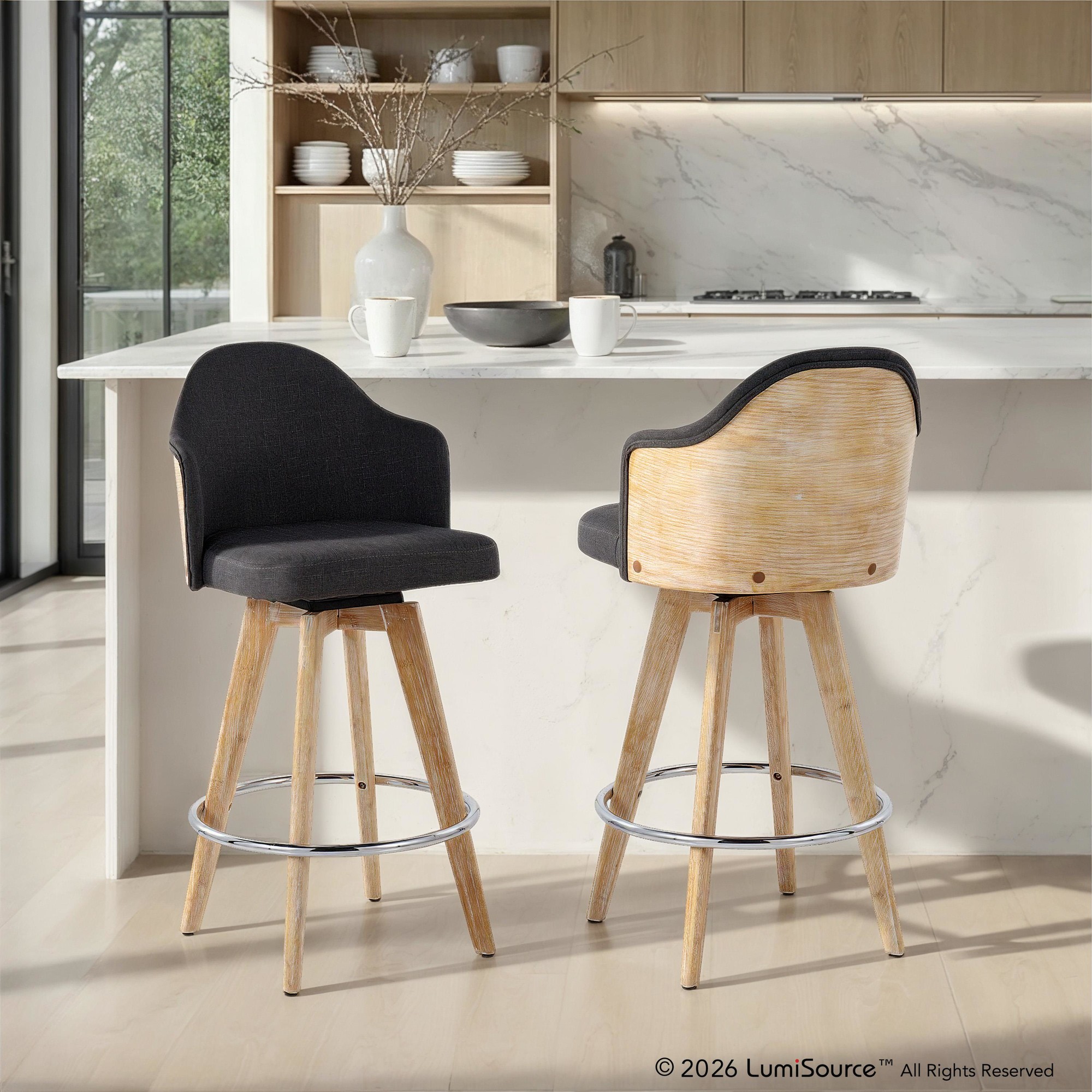 The contemporary charm of the Ahoy Counter Stool by LumiSource combines sturdy construction with aesthetic appeal. Sleek fabric upholstery accented by a bamboo back and stylish bamboo legs. Available in a variety of color and pattern combinations.