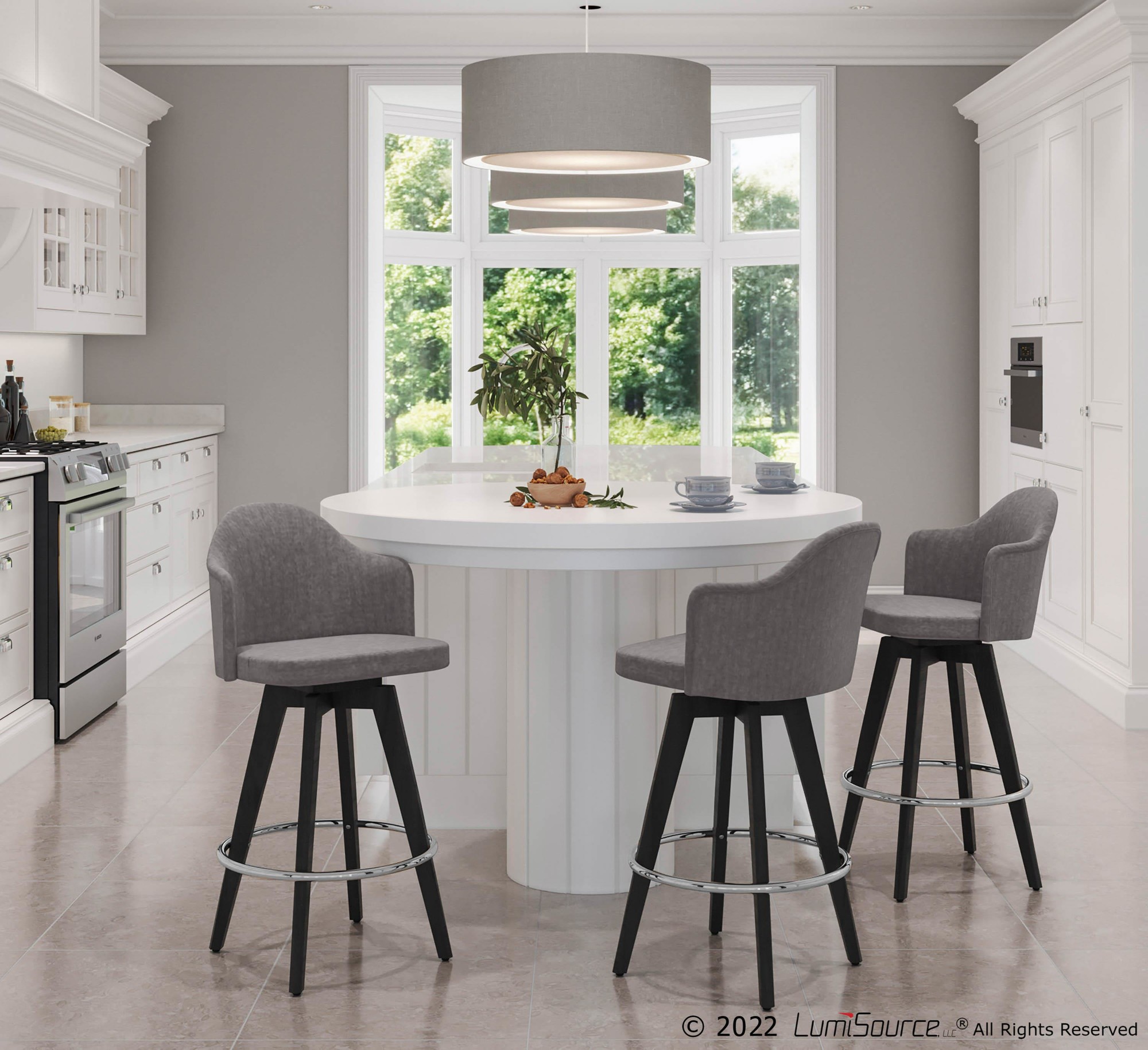 The contemporary charm of the Ahoy Counter Stool combines sturdy construction with aesthetic appeal. Sleek fabric upholstery is accented by stylish wood legs. Available in a variety of color and pattern combinations.