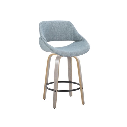 The wide and welcoming seat of the LumiSource Fabrico Counter Stool beckons one to sit and relax. A curved back and contoured upholstered seat is accented by flared walnut wood swivel legs that add to the stylish yet comfortable design. Available in a variety of upholstery colors, choose the one that suits your space best.