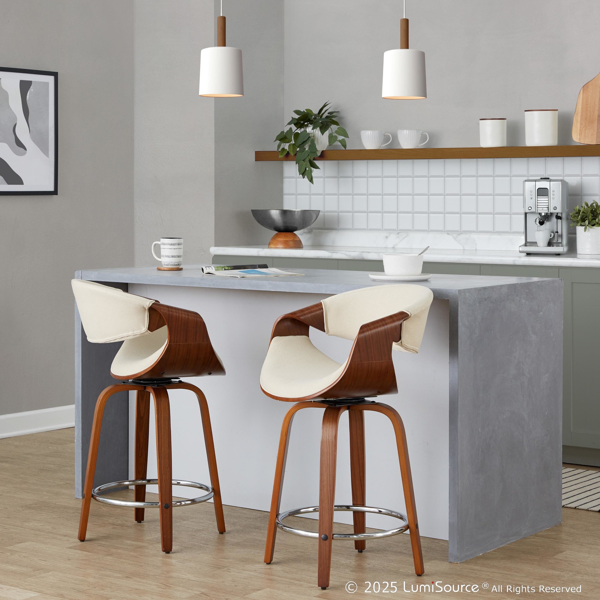 With a curvaceous dose of Mid-Century style, this unique design will look great at your counter area. Featuring a walnut finished stationary wood frame, luxurious woven fabric upholstery, swiveling seat, and stylish armrests. The Curvini Counter Stool by LumiSource is available in various finishes, choose the color that fits your space the best.