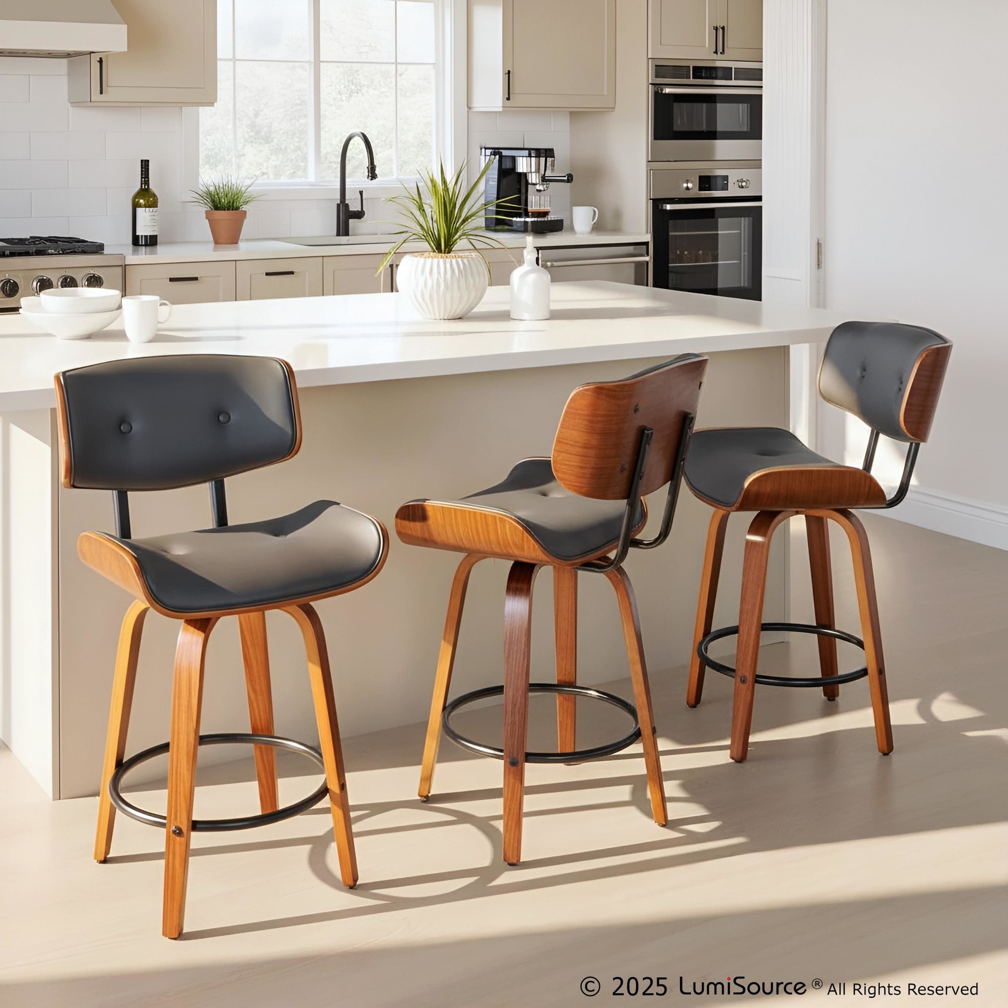 Add mid-century flair to your counter area with the Lombardi Fixed-Height Counter Stool by LumiSource. With tufted upholstery and comfortable padded seats, stylish bent wood backing, and a practical swivel feature, the Lombardi would be a perfect addition to any home. Available in various upholstery, wood, and metal finishes, choose the combination that suits your space best.
