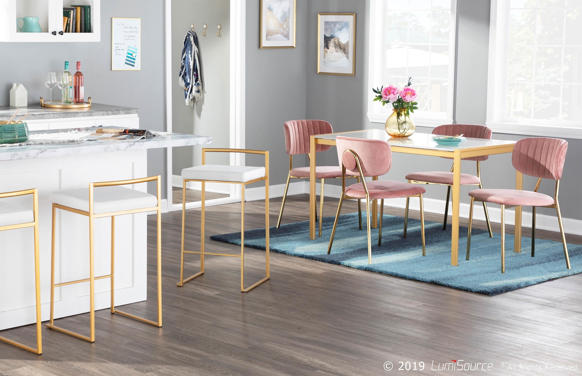 The simple elegance of the original design LumiSource Fuji Stacker Counter Stool belies its astonishing comfort. Lightweight thin lines create a simplistic fully assembled frame and backrest to support a thick padded seat cushion. A stackable design for easy storage makes this a great stool for entertaining. With its simple stylishness, the Fuji is sure to match any decor. Available in many color combinations, choose the look that best fits your dining space.
