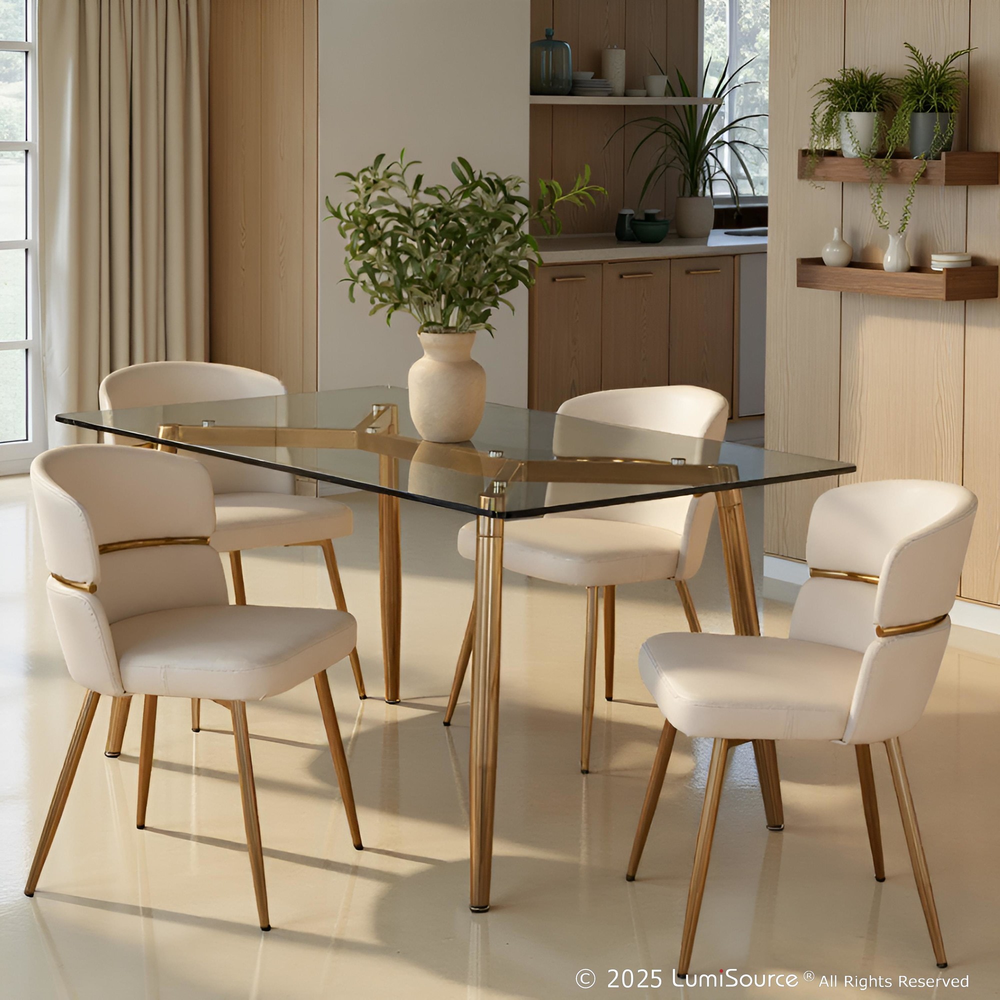 Simplistic and sleek the Clara Dining Table by LumiSource will elevate your room. Featuring geometric metal legs under a tempered glass table top, this table will add style to any dining area. Available in a variety of finishes, choose the one that fits your space perfectly.