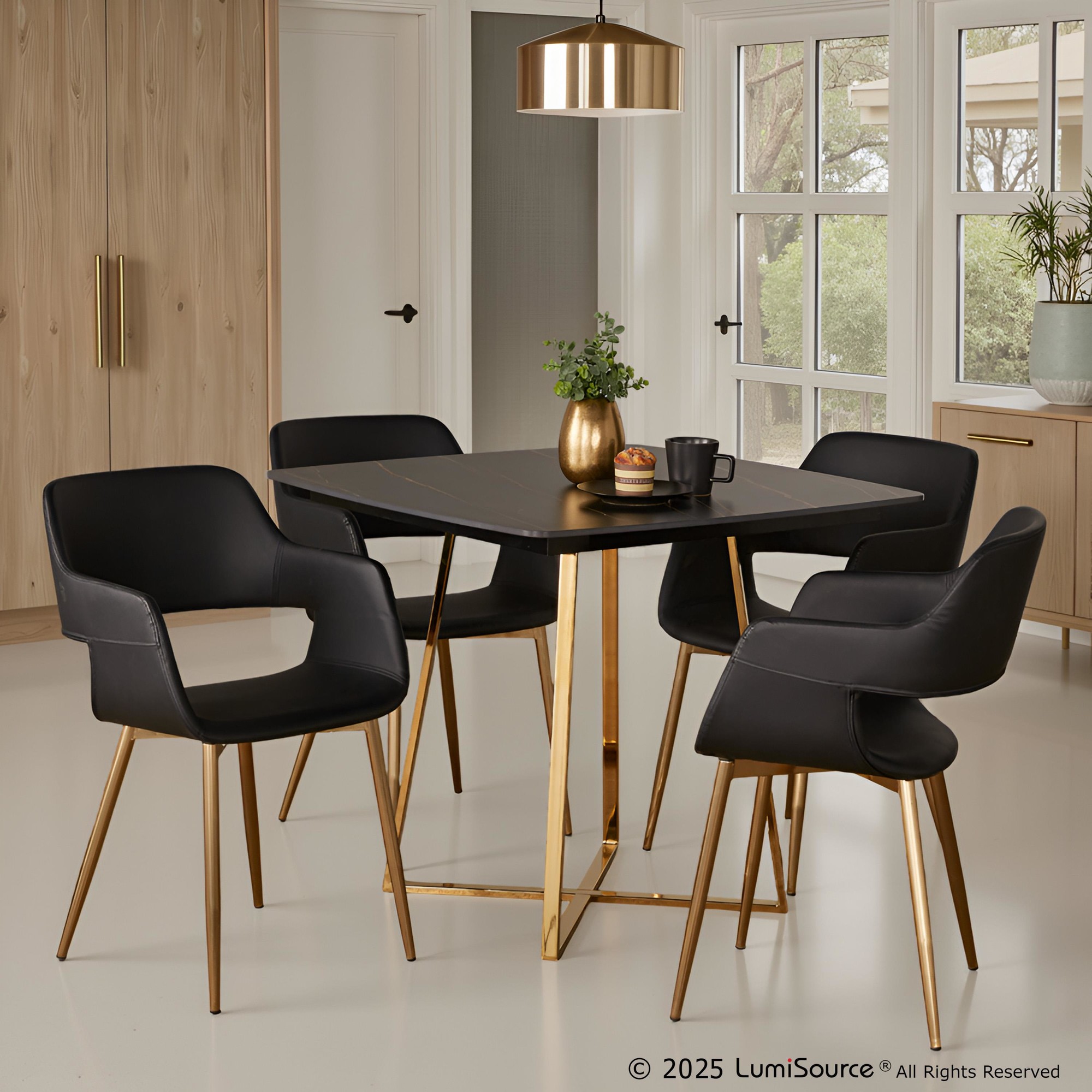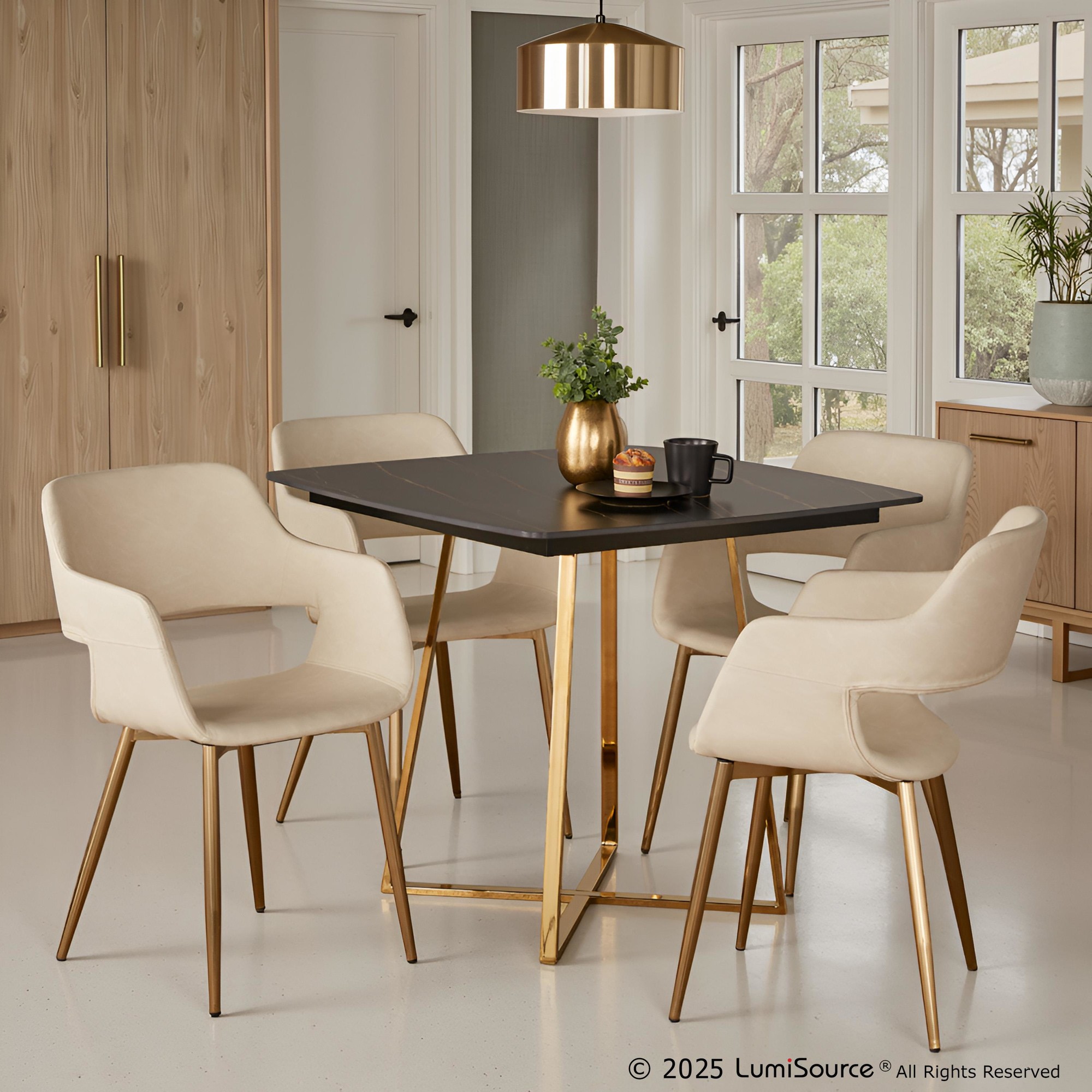 Full of contemporary elegance, the Cosmo Dining Table by LumiSource will elevate your room in effortless style. Featuring a captivating geometrical metal base with an elegant square faux marble top, the Cosmo Dining Table will definitely add a bold touch of glamour for your seating area. Available in a variety of table top and base colors, choose the one that fits your space best.