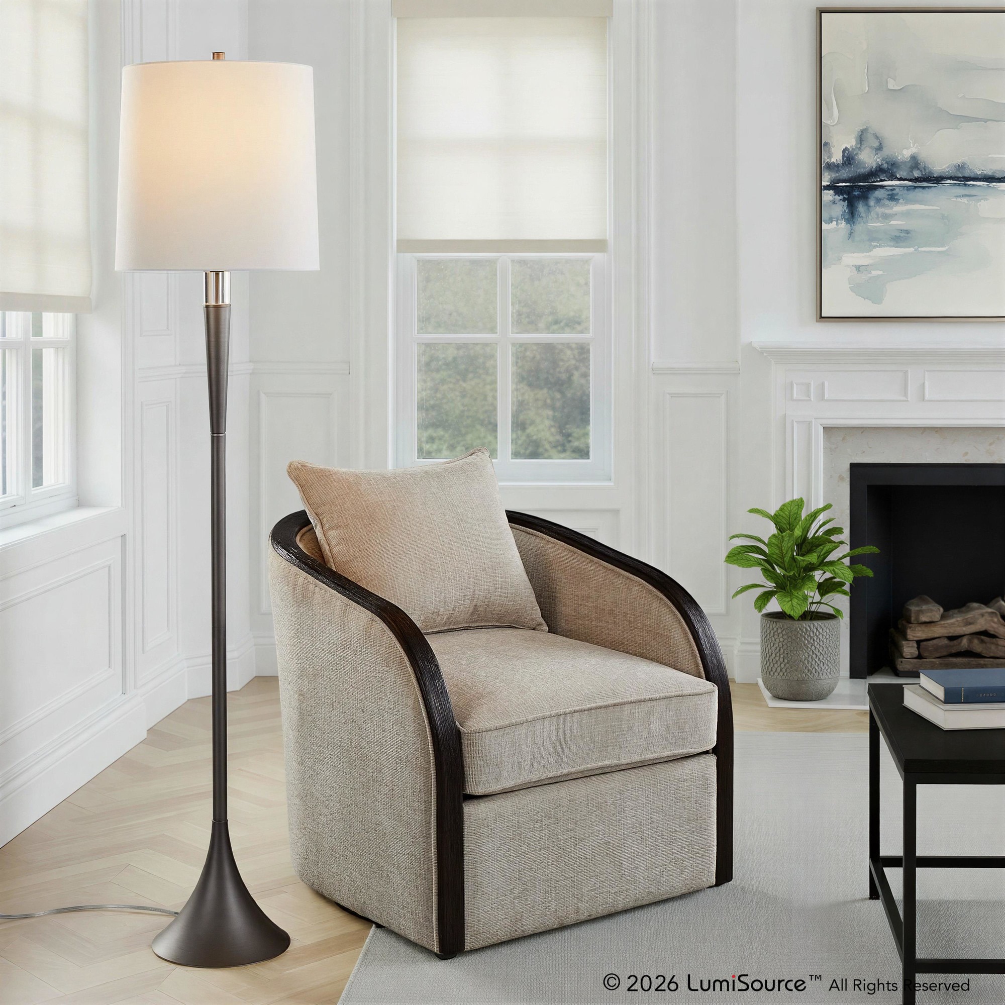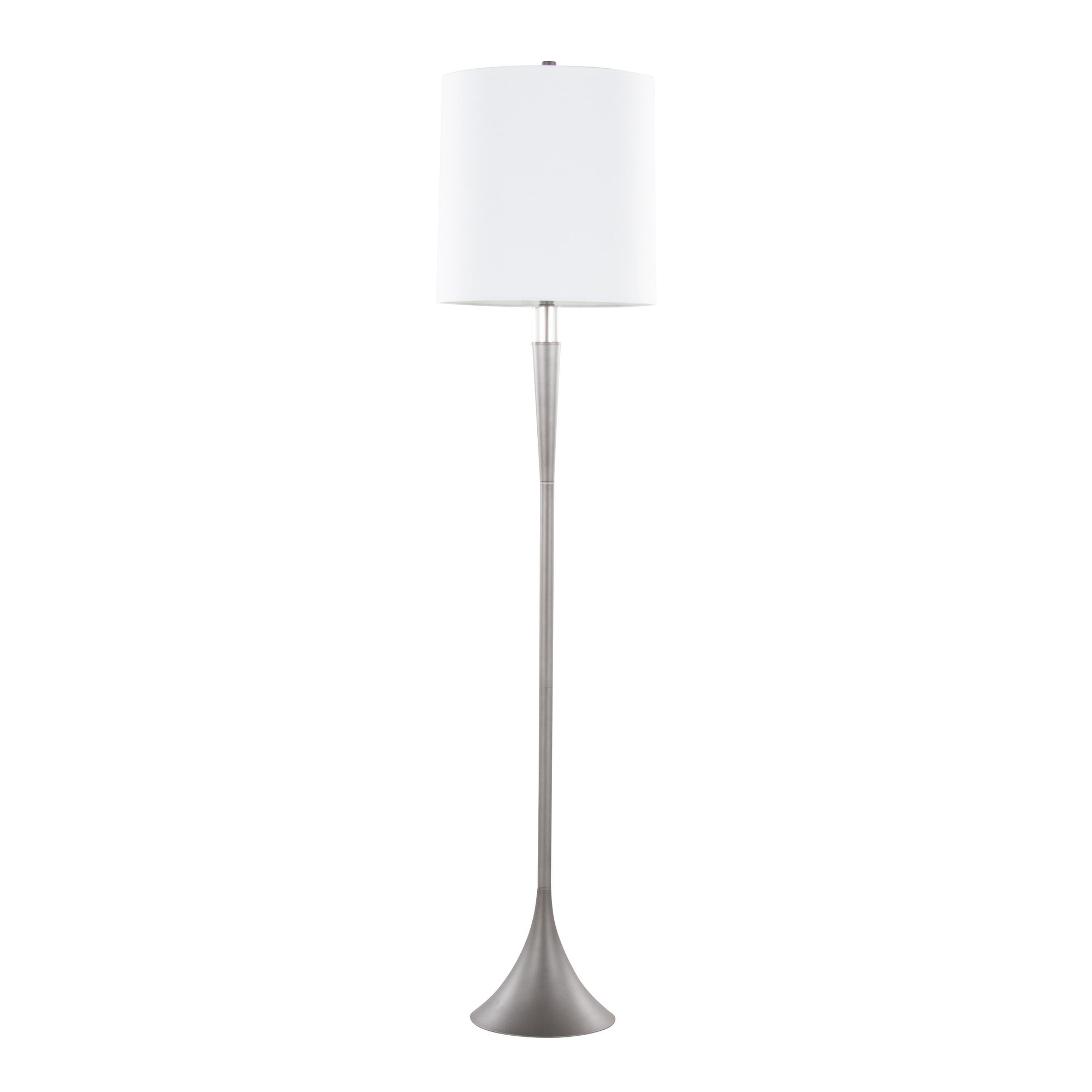 Add sleek contemporary style to your space with the Marla Floor Lamp by LumiSource, which features a beautiful round base and elegant crystal accent. This lamp is topped by a metal finial and a drum shade, creating a lamp that is versatile yet stylish. This lamp is a chic addition to any aesthetic with its modern and simplistic features.