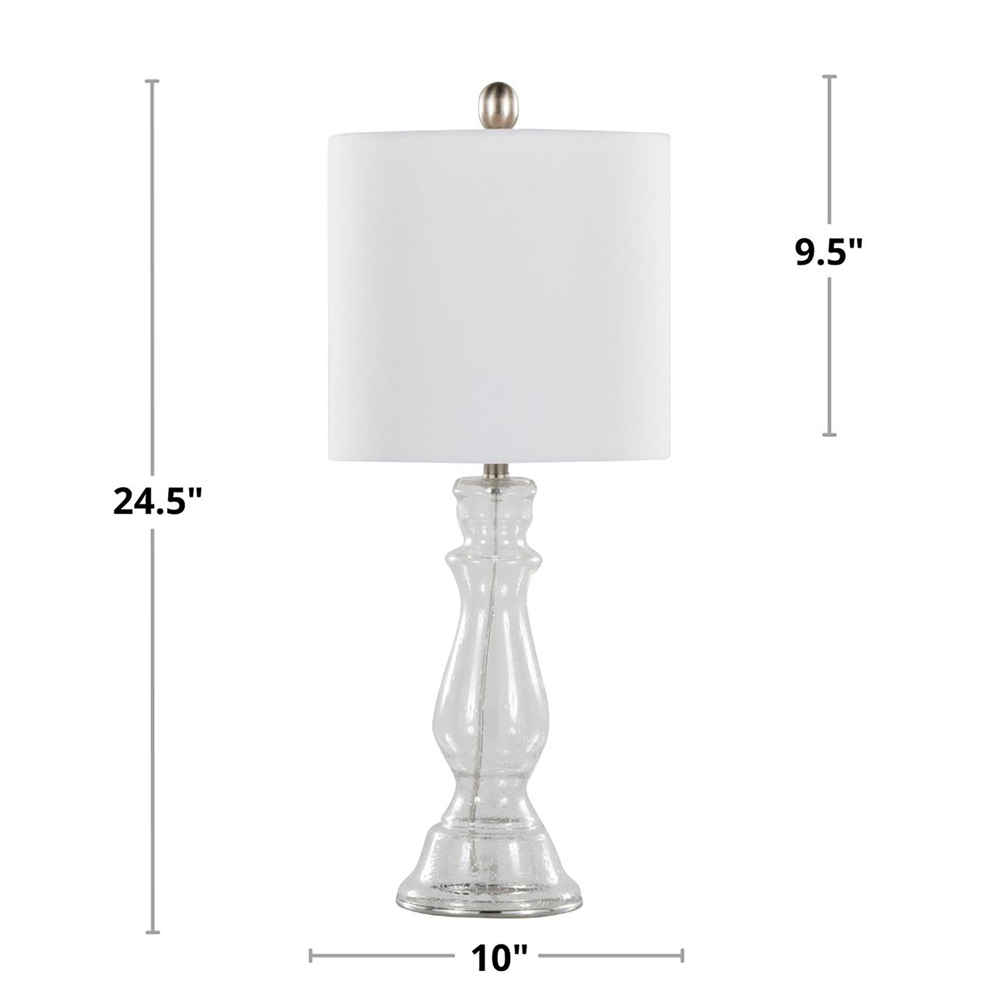 Add an updated touch to your space with the Bishop Table Lamp from Grandview Gallery by LumiSource. The traditional balustrade shape of these table lamps is complimented by a minimalistic linen drum shade that accentuate the beauty of the lamp's glass construction. Whether resting on your nightstands, set on side tables in the den or tucked into your favorite reading nook, this set of lamps is an appealing choice.